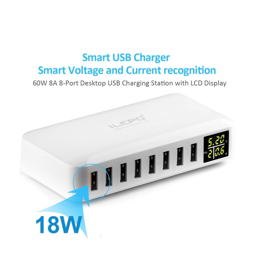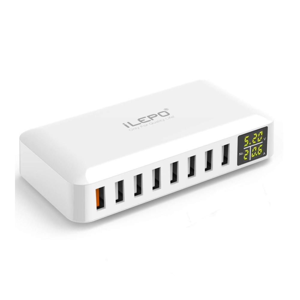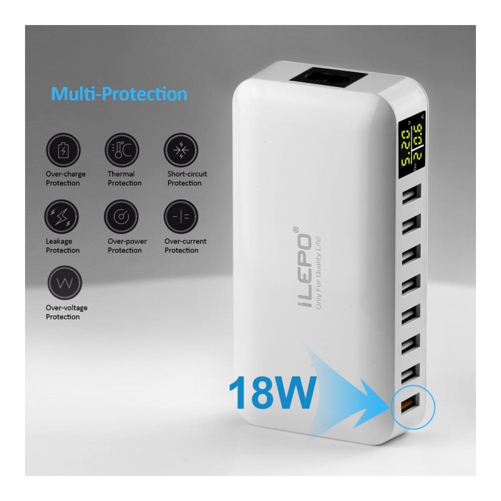 Multi USB Ladestation Ladegerät mit LCD Display,50Watt 10A USB Schnellladegerät Mehrfach mit QC3....