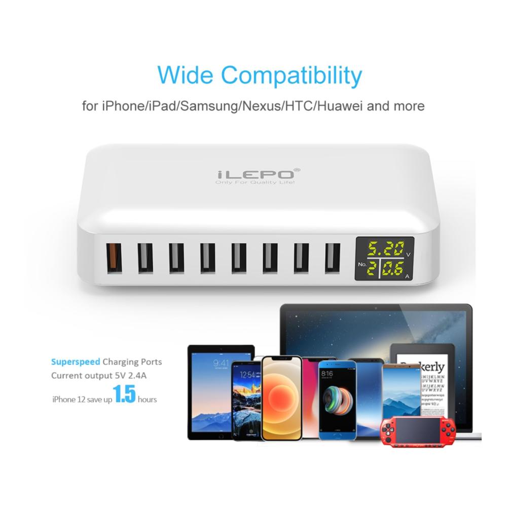 iLepo 40W Multi USB Ladestation Mehrfach,5V/8A Mehrfachlader Mini Tischladegerät, USB Ladegerät 8...