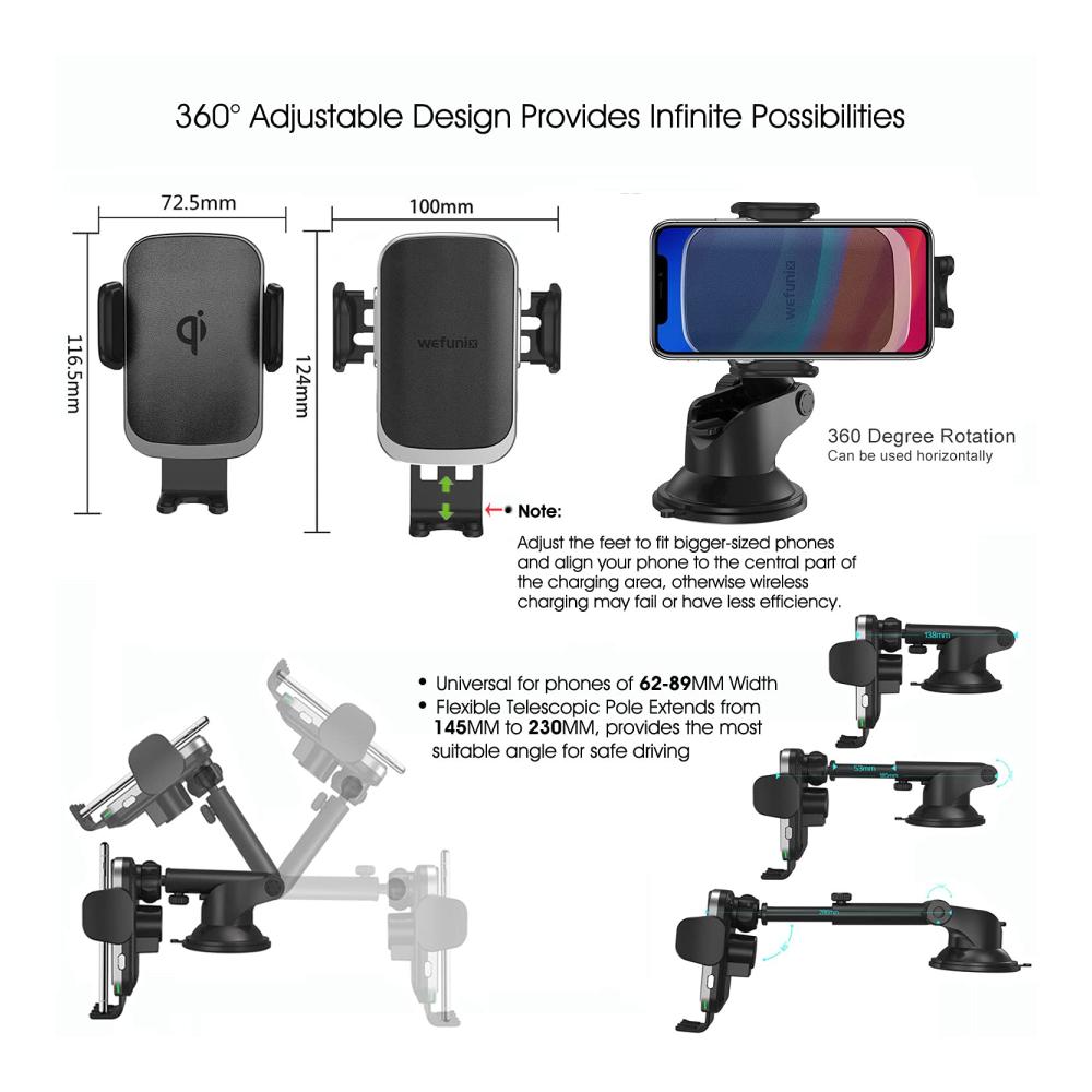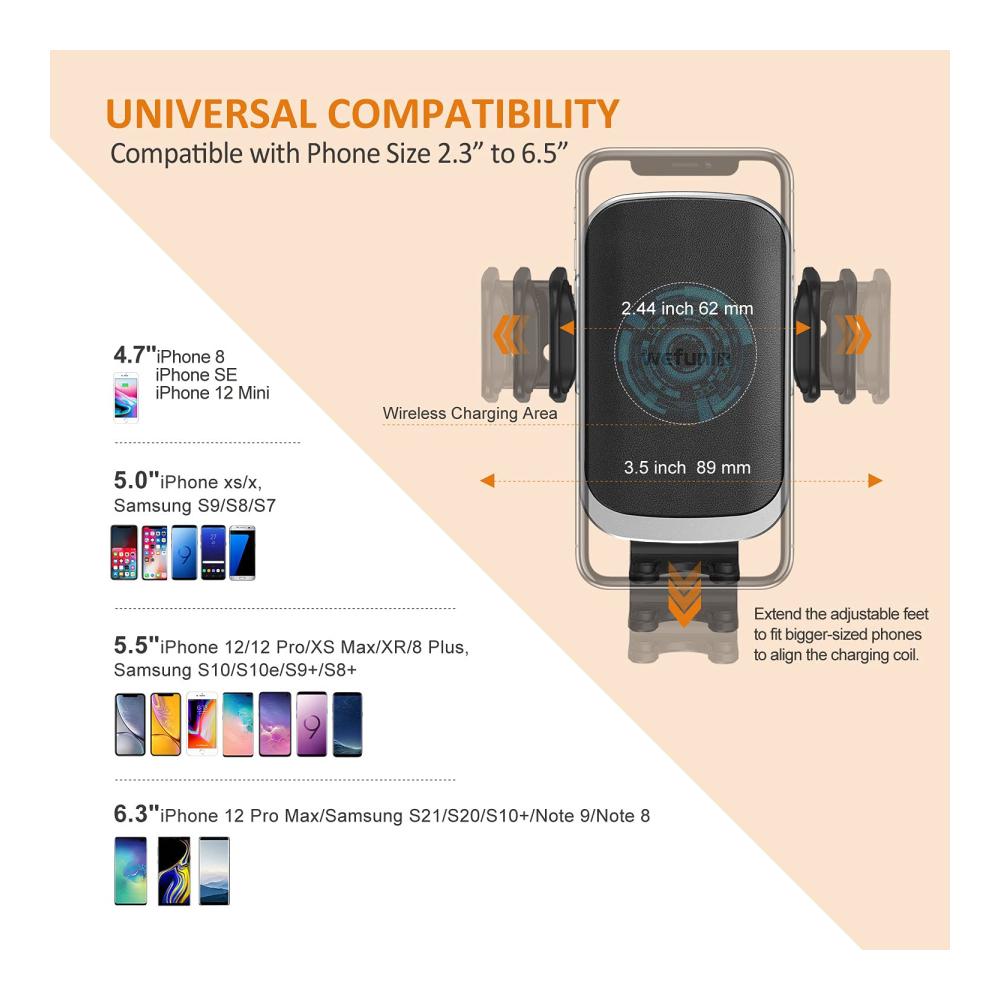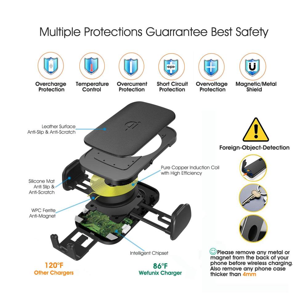 • 【Vielseitige Mehreren Installationswege】Verriegeln Sie Ihr Telefon intelligent, indem Sie es am Armaturenbrett oder am Lüftung installieren, das 360°-Teleskopdesign hilft Ihnen dabei,den am besten geeigneten Winkel für sicheres Fahren zu finden.Universal für Handys mit einer Breite von 62-89mm.※Es wird dringend empfohlen, das Ladegerät im Sommer in der Nähe des Lüftung zu platzieren, da hohe Temperaturen die Geschwindigkeit des drahtlosen Ladens verlangsamen und auf 5W Leistung umschalten.