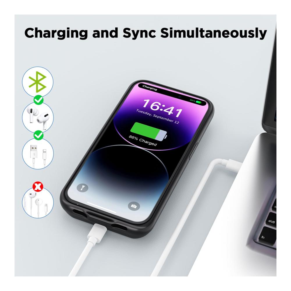 [Sync-Through-Technologie] – Einzigartige Sync-Through-Technologie ermöglicht es Ihnen, Ihr Telefon zu synchronisieren, ohne die Ladehülle zu entfernen, und es kann auch gleichzeitig aufgeladen werden. 100% kompatibel mit allen IOS-Versionen, Apple Pay und zukünftigen IOS-Software-Updates (Apple Car Play wird nicht unterstützt).