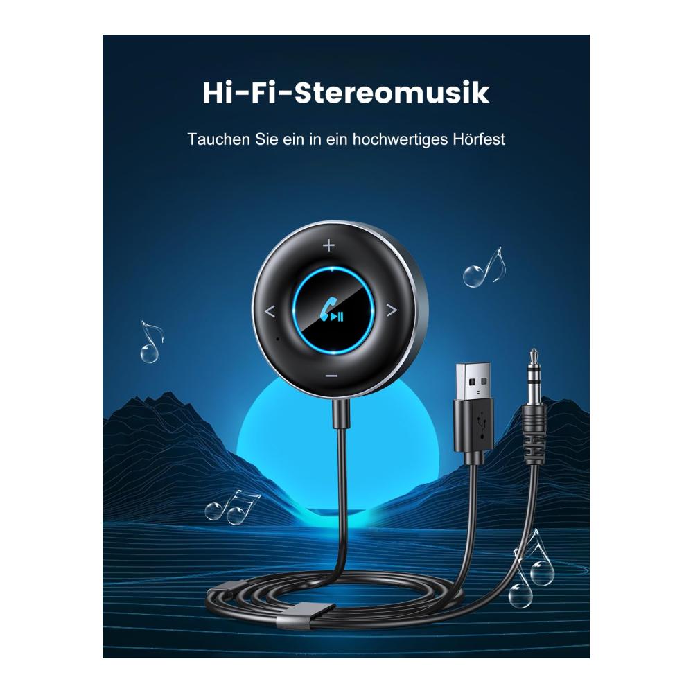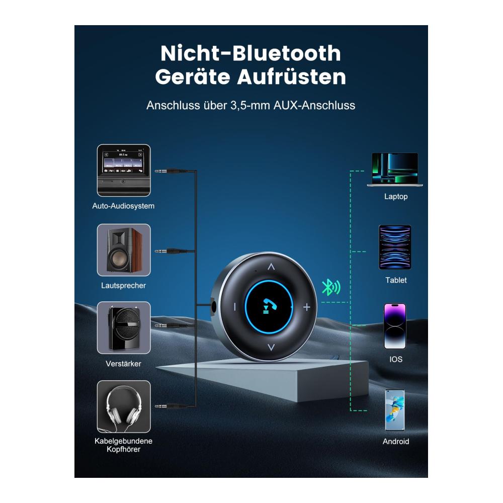 【Breite Kompatibilität】 Unser Bluetooth Receiver ist mit einem 3,5-mm-AUX-Kabel ausgestattet und eignet sich nicht nur für Autoradiosysteme, sondern auch für kabelgebundene Kopfhörer, Heim-Bücherregallautsprecher, Verstärker und vieles mehr. Für die Bluetooth-Verbindung kann er mit Ihrem Smartphone, Tablet, Laptop und allen Bluetooth-fähigen Geräten verbunden werden. Genießen Sie die Bequemlichkeit von kabellosem Audio, egal wo Sie sind.