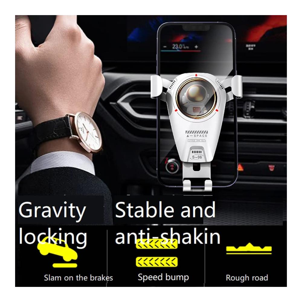 Der New Weiß Spaceman Autotelefonhalter ist die perfekte Ergänzung für Ihr Auto. Dank seiner stabilen Schwerkrafthalterung und der einfachen Befestigung an der Autolüftung können Sie Ihr Handy sicher und bequem verwenden, während Sie unterwegs sind. Dieser Handyhalter ist aus hochwertiger Aluminiumlegierung gefertigt und wird mit allen notwendigen Befestigungsmaterialien geliefert.