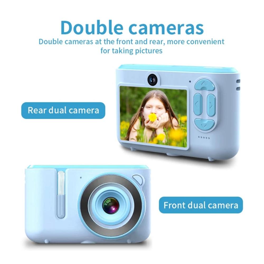 Entdecken Sie die neue Dual-Selfie-Minikamera, die digitale Fotokamera für Kinder in Rosa. Mit einem Gewicht von 300 Gramm ist sie leicht und handlich. Die Kamera verfügt über einen SD-Kartensteckplatz und wird mit einer 8GB-Speicherkarte geliefert. Das 720P-Videoformat und das Farbdisplay machen das Fotografieren zum Vergnügen. Die Lithiumbatterie sorgt für eine lang anhaltende Nutzung. Bitte beachten Sie, dass aufgrund von Lichtreflexionen und Bildschirmeinstellungen die Farben leicht vom tatsächlichen Produkt abweichen können.