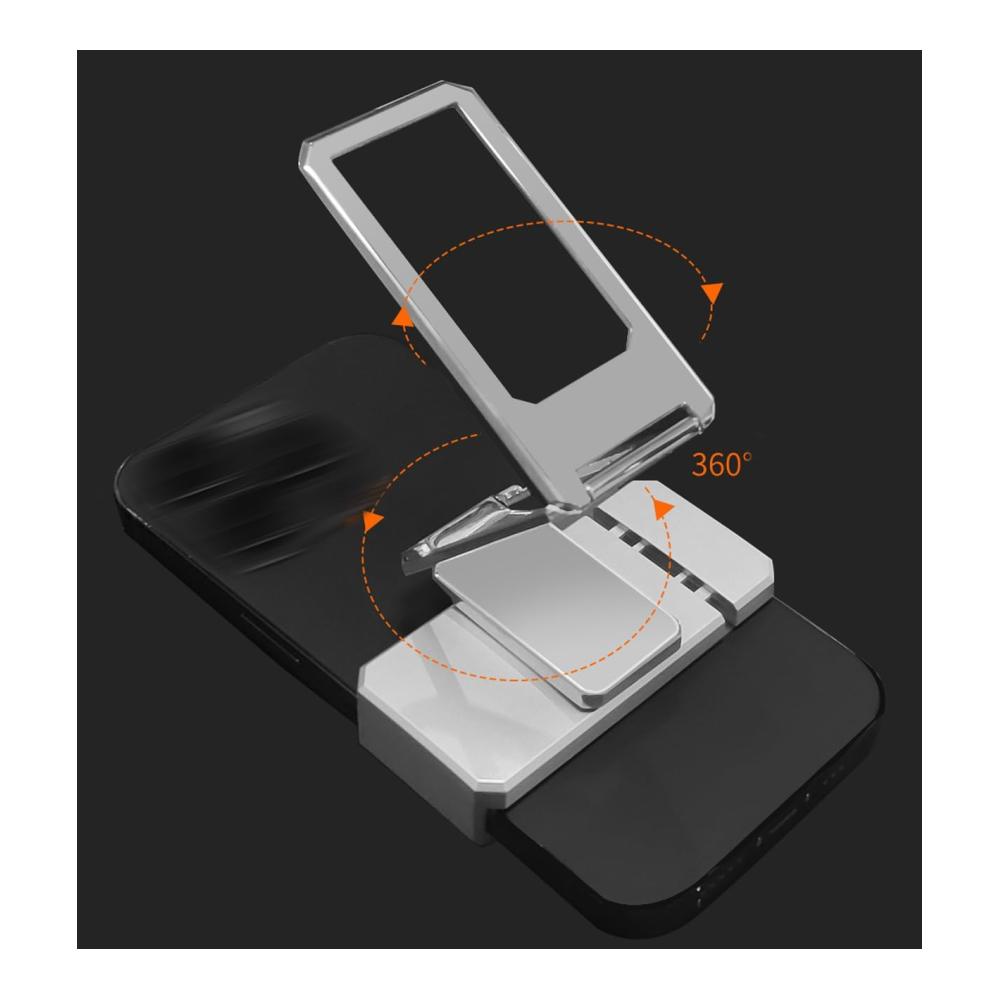 2024 New Upgraded Back Clip Type 360 Folding Bracket, Fully Adjustable Foldable Desktop Phone Holder, Compatible Cell Phone Stand For All Phones Material: Zinc Alloy Color: Silver/Black/Rose Gold Thickness: 0.35CM Size: 3.54*5.1inch Applicable Models: Universal For All Phones