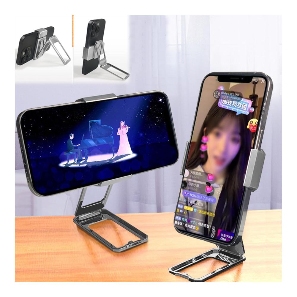 Neuer 2024 aktualisierter Rückenclip-Typ 360 Faltklammerhalter, voll verstellbarer faltbarer Desktop-Handyhalter, kompatibler Handy-Ständer für alle Telefone. Material: Zinklegierung. Farbe: Silber/Schwarz/Roségold. Dicke: 0,35 cm. Größe: 3,54 * 5,1 Zoll. Anwendbare Modelle: Universal für alle Telefone.