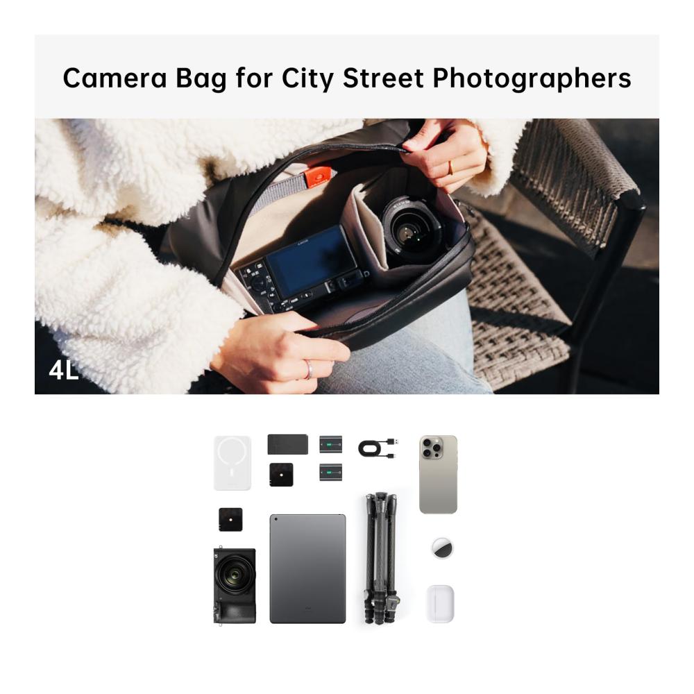 【4L】 Diese Kameratasche bietet Platz kompatibel mit 1 spiegellose Kamera und 1 Objektiv oder einen Satz Drohnen der DJI Mini-Serie, geeignet für Sony, Nikon, Canon, DJI Mini, iPad Mini 8.3, Stativ, kann als Umhängetasche oder Brusttasche verwendet werden , oder Hüfttasche, die sich sehr gut für Liebhaber der Stadtfotografie eignet.