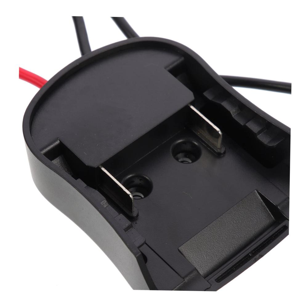 - Batterie-Dock-Stromanschluss: Schließen Sie dieses Produkt an die 18-20-V-Lithium-Ionen-Batterie an und leiten Sie die Batterieleistung über Drähte ab, um sie von anderen Geräten mit dem gleichen Spannungs-Power-Wheel-Adapter zu verwenden.
