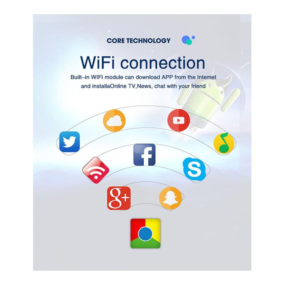 WIFI-Verbindung: Das integrierte WLAN-Modul ermöglicht das Herunterladen von Apps, Online-TV und News. Unterstützt auch Bluetooth-Freisprechen, Telefonbuch und Musik.