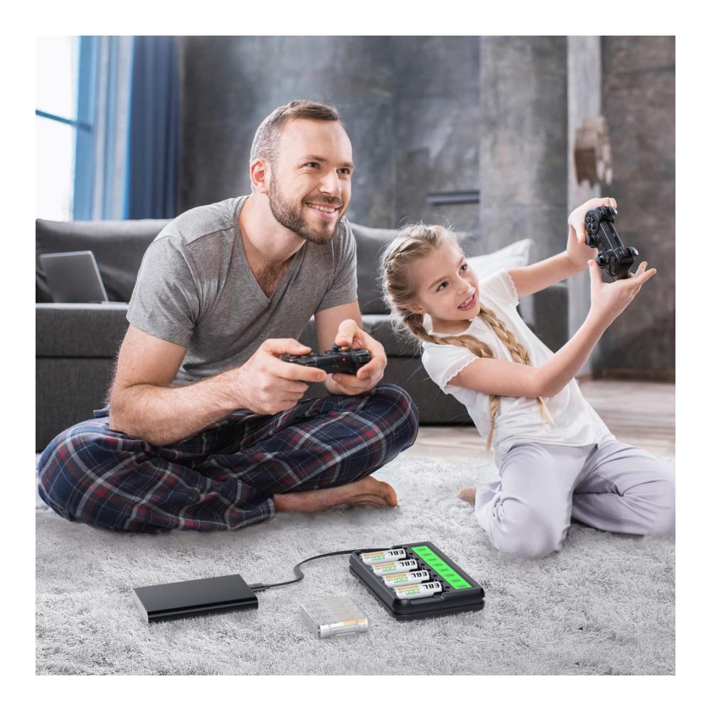 【2X Faster & Intelligent Ladung】- Akku Ladegerät mit DC 5V/2A Eingang, bis zu 500mA Ladegeschwindigkeit für jeden Steckplatz. Eingebaut- mit intelligenter Technologie, wenn die Batterie vollständig geladen ist, wird es automatisch aufhören zu laden.