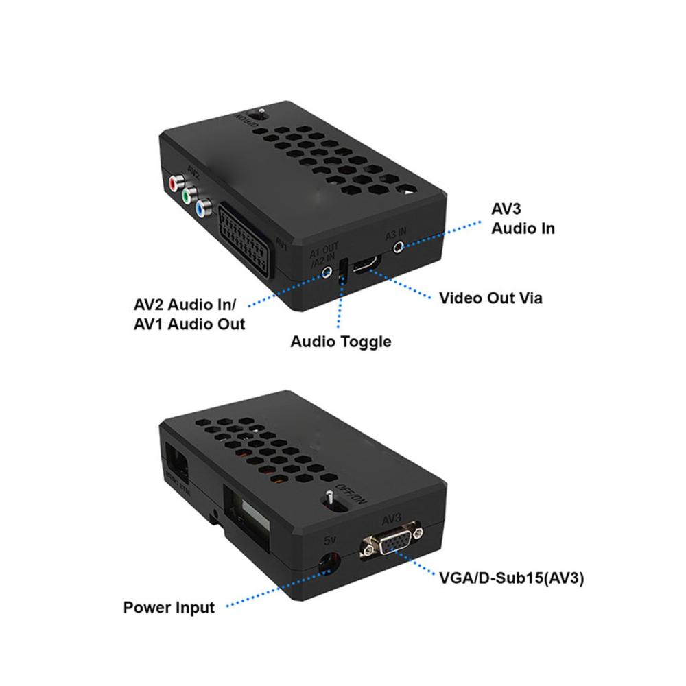 Spezifikation:Artikeltyp: OSSC Open Source Scan ConverterMaterial: ABSFarbe: SchwarzBatterie der Fernbedienung: 2xAAA (Batterie nicht im Lieferumfang enthalten)OSSC Version: Version V1.7Anwendbare Regionen: WeltweitUnterstützung: Erkennung und Digitalisierung verschiedener analoger SDTV/EDTV/HDTV/PC-ModiUnterstützte Eingabe-/Ausgabeauflösungen:240p/ 288p; 480p/576p oder 720p Line Triple (nur kompatible Displays)240p/288p; 1280 x 960, 1280 x 1152, 1080p, 1600 x 1200 Zeilenvierfach/Fünffach (nur kompatible Displays)25-kHz-Modus mit mittlerer Auflösung; 480p, 480i/576i; 480p/576p oder Pass Through480p; Straight Through oder 960p Dual Line (nur kompatible Displays) Alle anderen 31-kHz-Auflösungen erfülltLine3x/4x/5x-Unterstützung: 240p/288p mit verschiedenen Sampling-ModiOptionale Sampling-Konfiguration für 480p-Eingang: DTV-480p oder VGA 640x480Optionale CSC-Konfiguration für YPbPr Quelle: Rec. 601 oder Empfehlung 70Eingänge:1xSCART, unterstützt RGB (Clean Csync, Cvideo Sync, Luminance Sync), RGsB, Ypbpr1xComponent Video, unterstützt Ypbpr- und RGB-Signale1xD SUB15 (VGA), unterstützt RGBHV, RGB, RGsB, Ypbpr2x3,5 mm analoge Sprachfrequenz, unterstützt alle analogen Sprachfrequenzen. Eingang 1 kann zwischen Ausgang (von AV1/SCART) oder Eingang umgeschaltet werdenAusgang:1xHD-Multimedia-Schnittstelle kompatibel oder DVI-D mit Adapter (nur digital, einschließlich Sprachfrequenz). Vollständiger 24-Bit-RGB-Ausgang über DVI/HD-Multimedia-SchnittstellenkompatibilitätPaketliste:1 x Videokonverter1 x Adapter4 x Netzteil 2 x Bedienungsanleitung1 x Fernbedienung (Batterie nicht im Lieferumfang enthalten)Hinweis:AV-Video und Video werden nicht unterstützt, erfordert Adapter/Transcoder