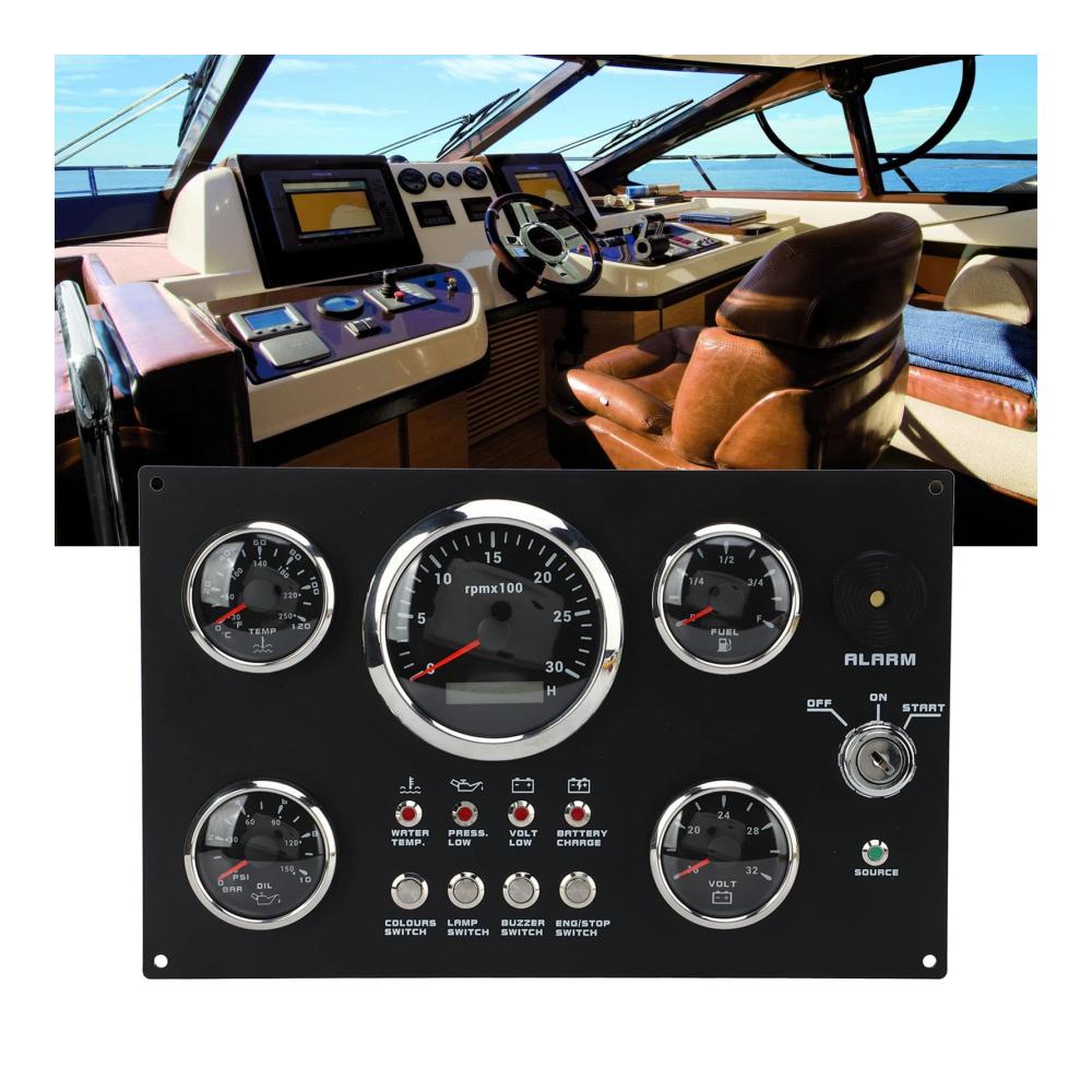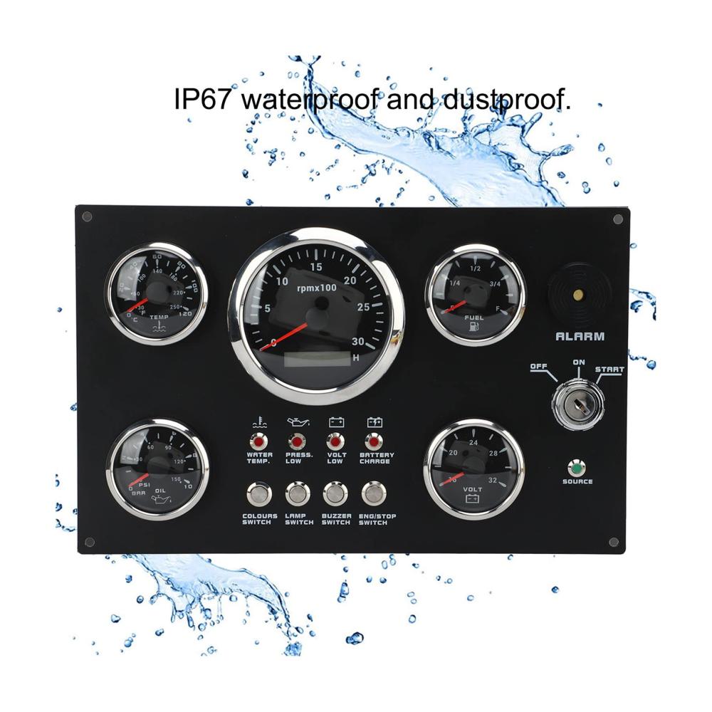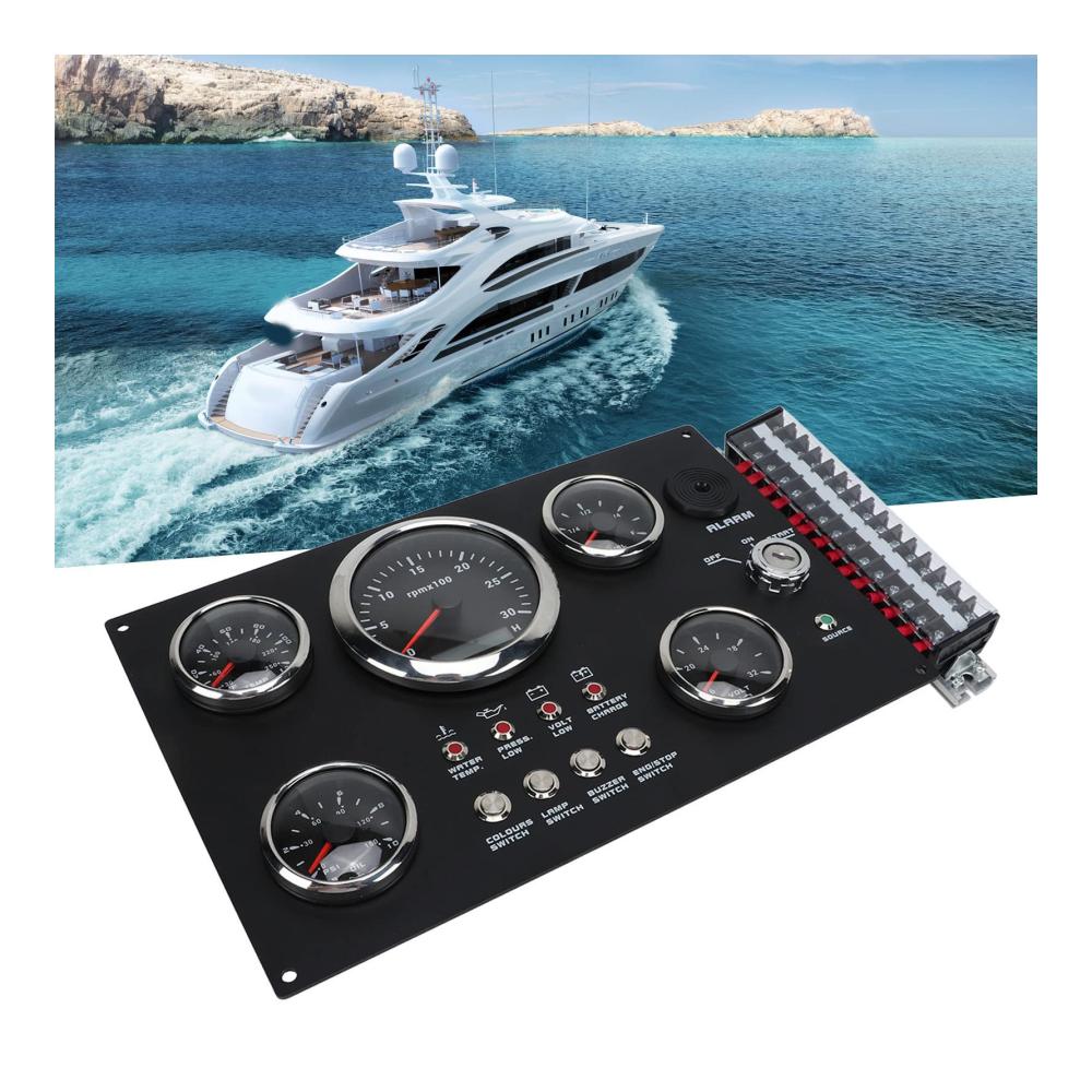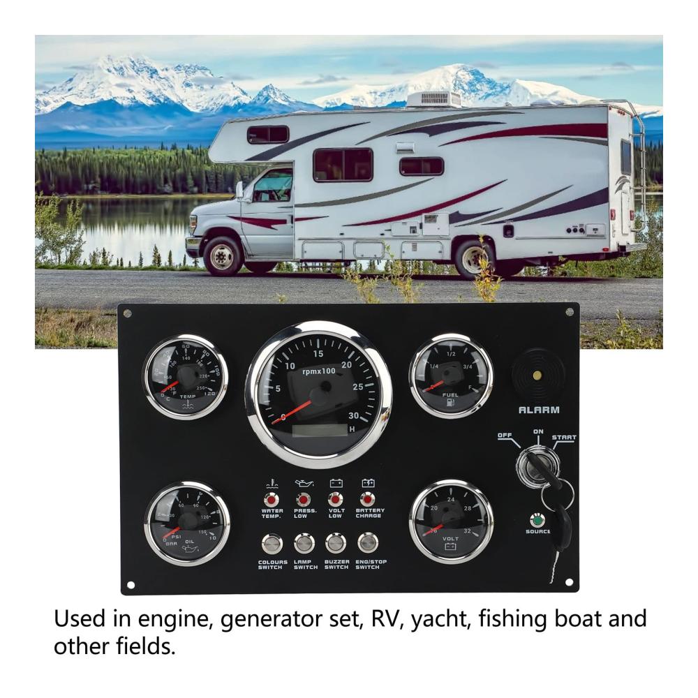 【Universelle Anwendung】 Dieses Panel kombiniert 5 Messgeräte, spart Platz und eignet sich für den Einsatz in Motoren, Generatorsätzen, Wohnmobilen, Yachten, Booten, Maschinen und modifizierten Fahrzeugen.