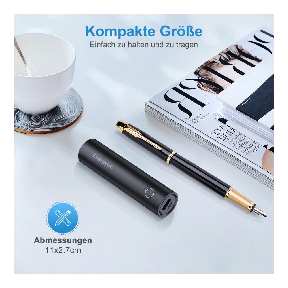 Dank seiner tragbaren Größe passt dieser externe Akku problemlos in Ihre Tasche oder Handtasche. Nie mehr Sorgen um leere Batterien unterwegs – die Mini Powerbank ist Ihr zuverlässiger Begleiter für den täglichen Gebrauch.