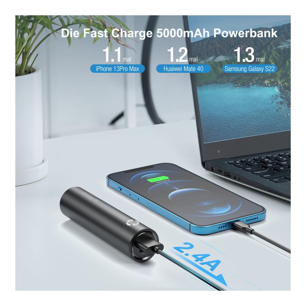 Verlassen Sie sich auf unsere Mini Powerbank USB C 5000mAh – Ihre kompakte Lösung für unterwegs. Bestellen Sie jetzt und erleben Sie die bequeme und zuverlässige Energieversorgung für Ihr Smartphone!