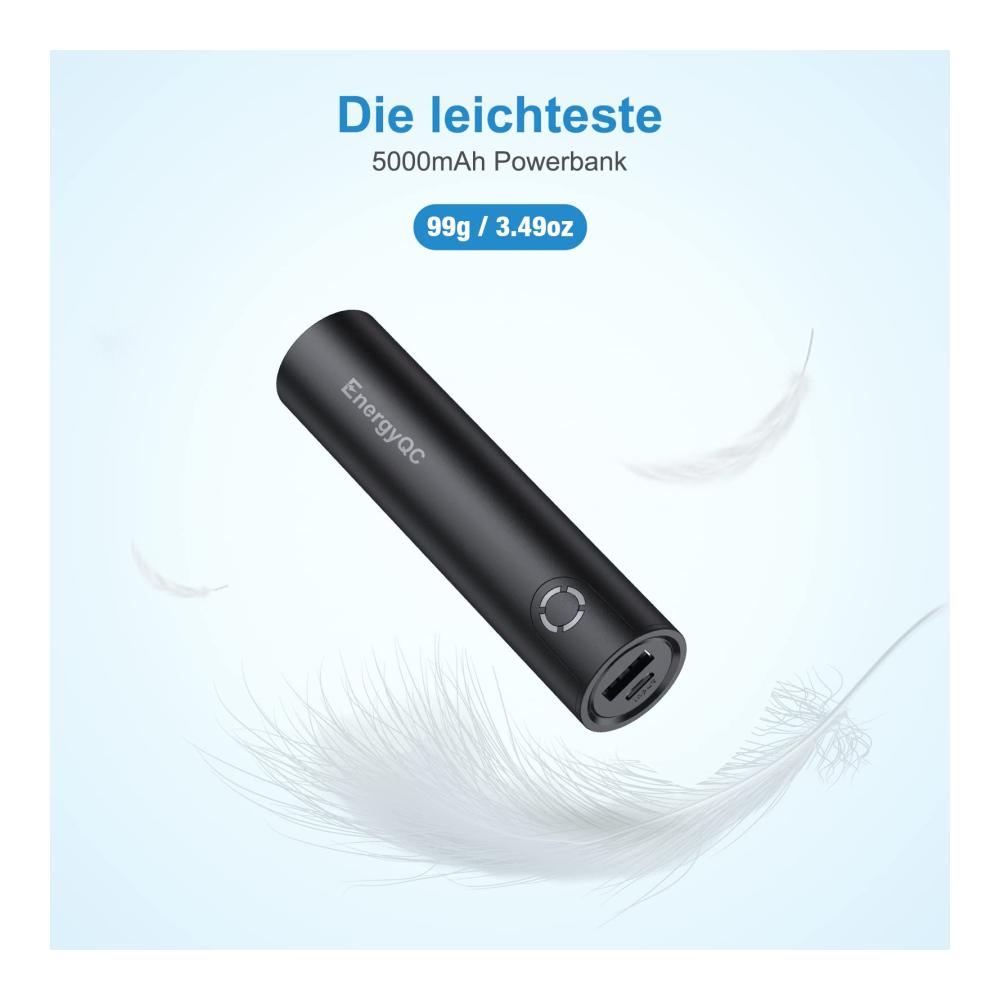 ✨【Ultra Kompakt】 Mit einem Gewicht von 99g ist es die leichte 5000mAh Powerbank. Diese Power Bank mit dem zylindrischen Design ist leicht zu halten und tragen.