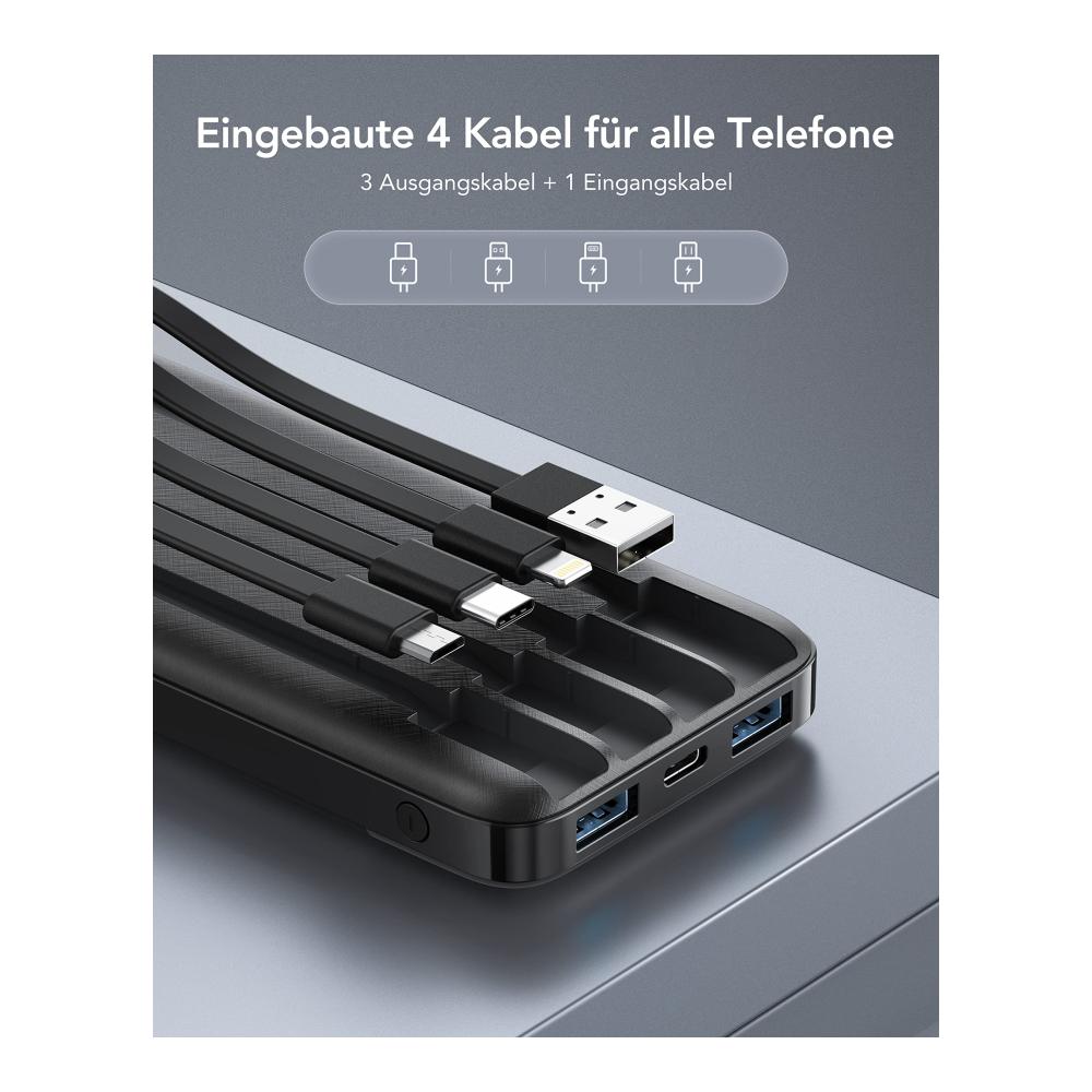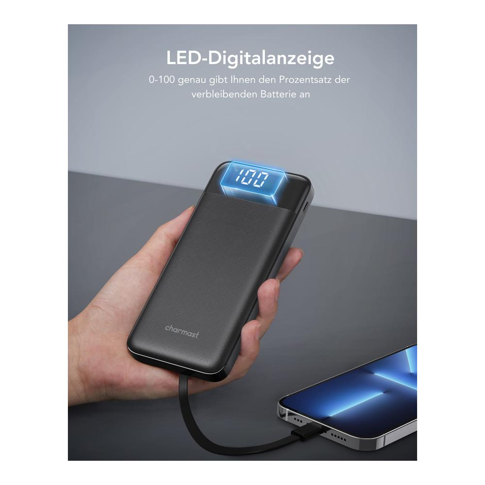 Charmast 10000mAh Power Bank mit 4 Kabel & LED-Display