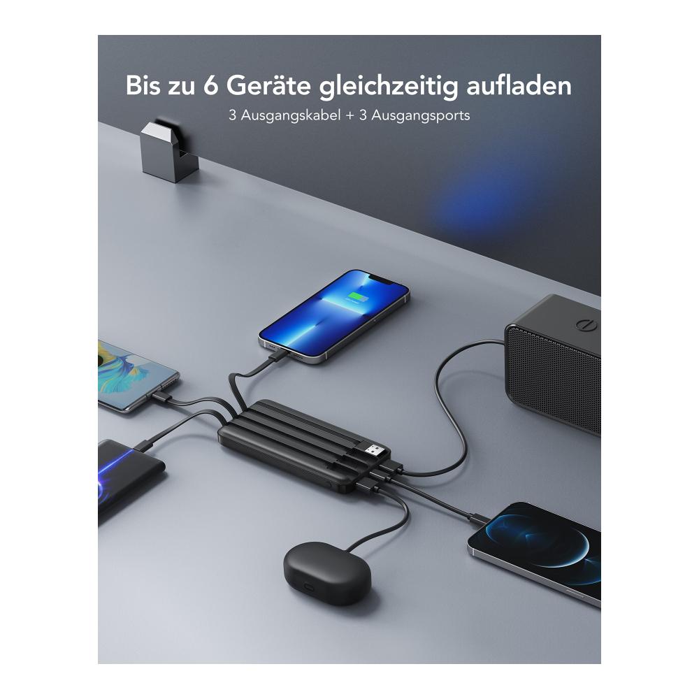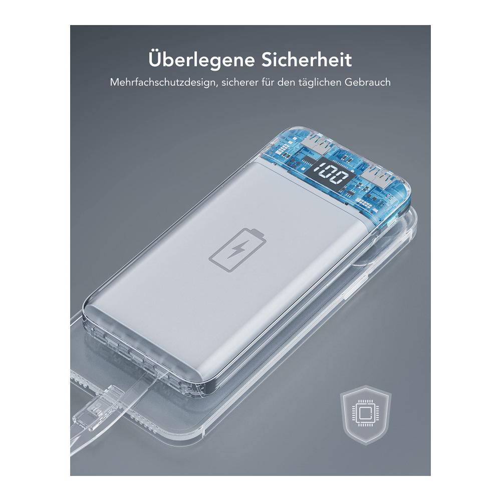 Unsere Powerbank 10000mAh Externer Akku USB C Power Bank bietet Ihnen das ultimative Ladeerlebnis. Mit 4 integrierten Ladekabeln, LED-Anzeige und einer Kapazität von 10000 mAh sind Sie immer einsatzbereit. Dank der 6 Ausgänge und der praktischen Tragbarkeit ist sie perfekt für unterwegs. Verpassen Sie nicht die Chance, Ihre Geräte zuverlässig und schnell aufzuladen, egal ob iPhone, Huawei, Samsung oder Tablet.