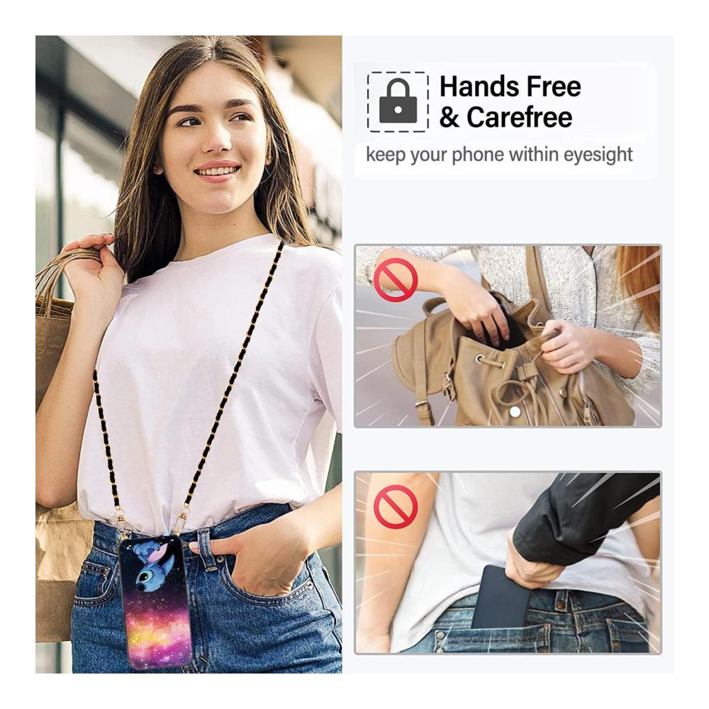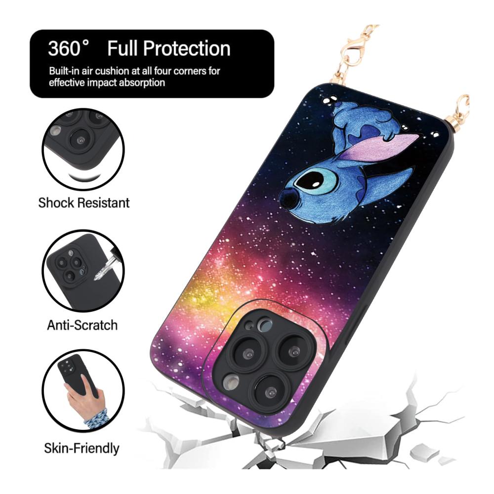 Tragen Sie Ihr Apple iPhone 11-6.1 stilvoll und sicher mit dieser praktischen Handykette! Die schwarze Silikon-Schutzhülle aus weichem TPU-Material bietet zuverlässigen Schutz vor Stößen und Kratzern. Dank des mitgelieferten Umhängebands können Sie Ihr Telefon bequem um den Hals tragen und haben es immer griffbereit. Die süße Stitch-Hülle verleiht Ihrem iPhone einen niedlichen Touch. Ideal für unterwegs und perfekt für alle, die Wert auf Komfort und Stil legen.