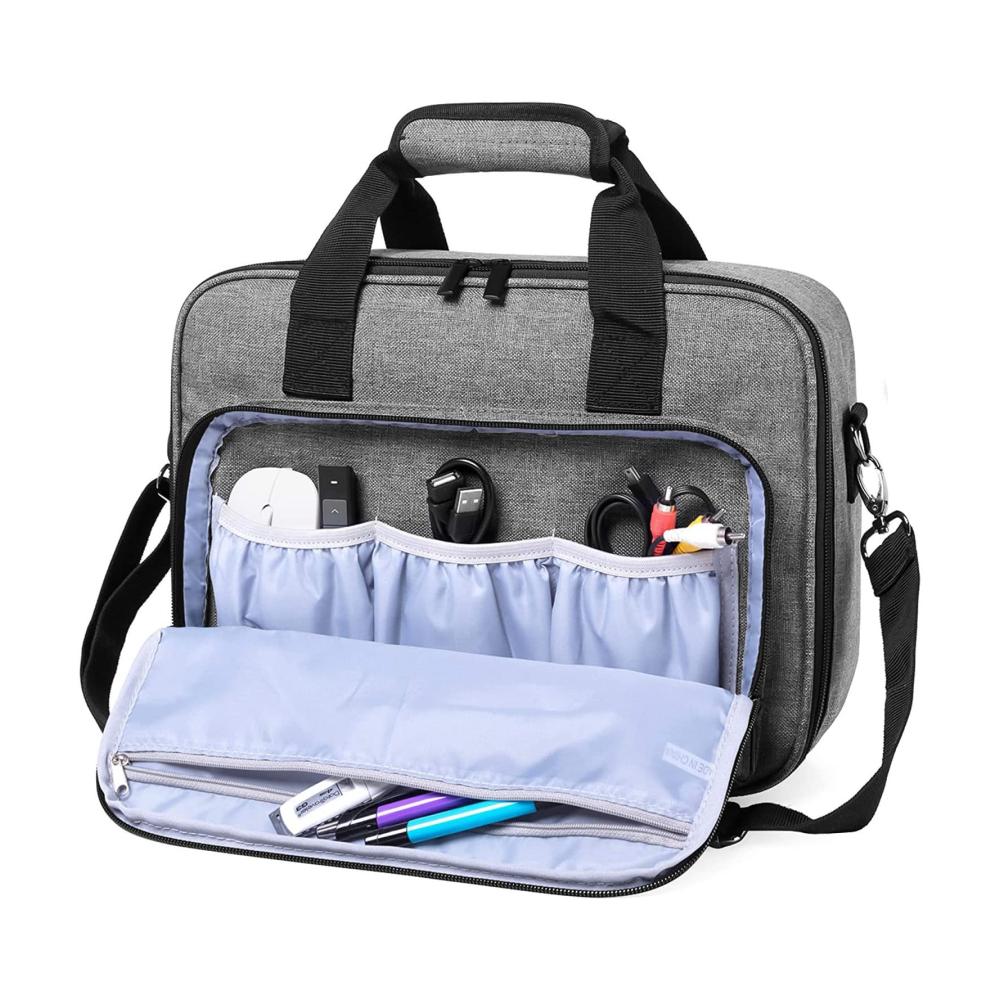 Entdecken Sie diese vielseitige Projektor-Tragetasche, die speziell für Epson, BenQ, ViewSonic und andere Modelle entwickelt wurde. Die robuste Konstruktion gewährleistet optimalen Schutz während des Transports oder der Lagerung. Mit einer Reihe von Zubehörtaschen und einem geräumigen Hauptfach bietet sie ausreichend Platz für Ihr gesamtes Equipment. Die Abmessungen passen perfekt zu den meisten gängigen Modellen. Ein unverzichtbares Accessoire für alle Projektoren!