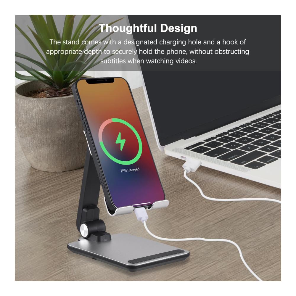 Praktischer faltbarer Handy-Ständer Höhenverstellbarer Halter für Schreibtisch. Ideale Smartphone- und Tablet-Halterung mit einstellbarem Winkel für bequeme Nutzung. Entdecken Sie jetzt