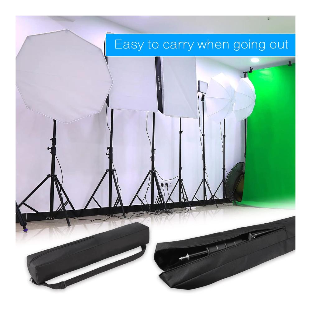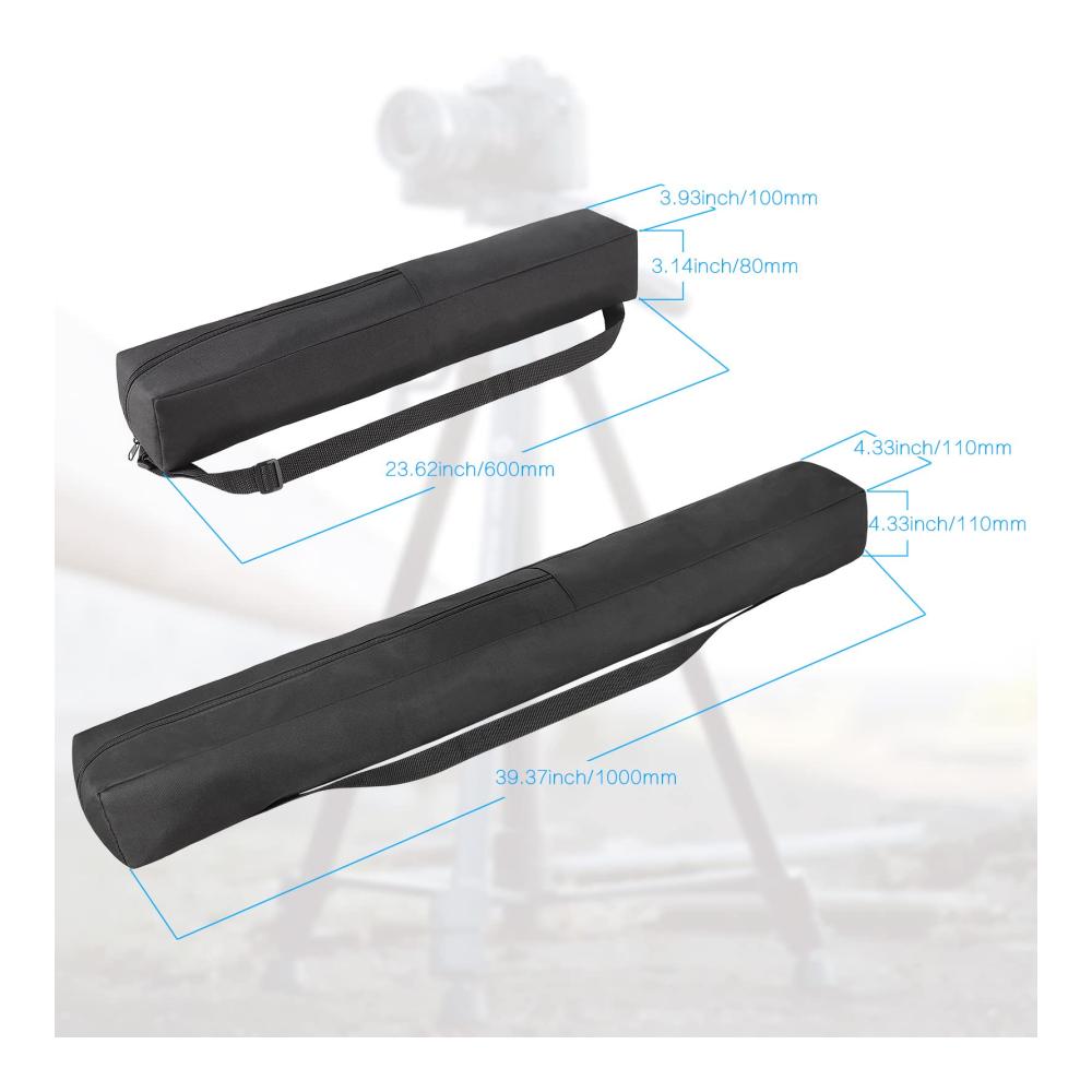 Transportieren Sie Ihre Ausrüstung sicher mit den Stativtaschen. Hergestellt aus strapazierfähigem Nylon für Langlebigkeit und Wasserbeständigkeit. Die Taschen sind leicht und tragbar, mit einem abnehmbaren Schultergurt und verstellbarer Schnalle.