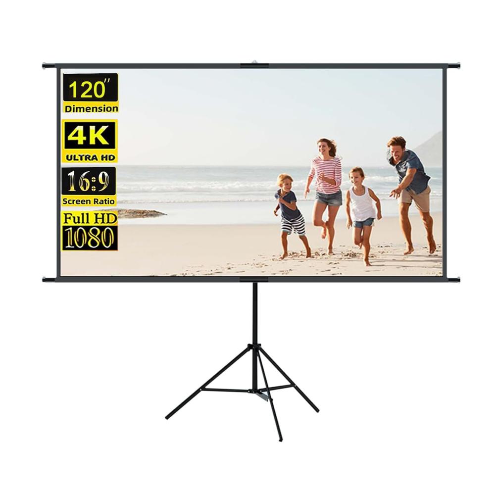 VISULAPEX 120″ Leinwand Beamer mit Stand HD 4K, 16: 9, 160°Betrachtung Leinwand Beamer mit Stativ Schnelles Falten Tragbare für Heimkino, Camping und Büropräsentationen