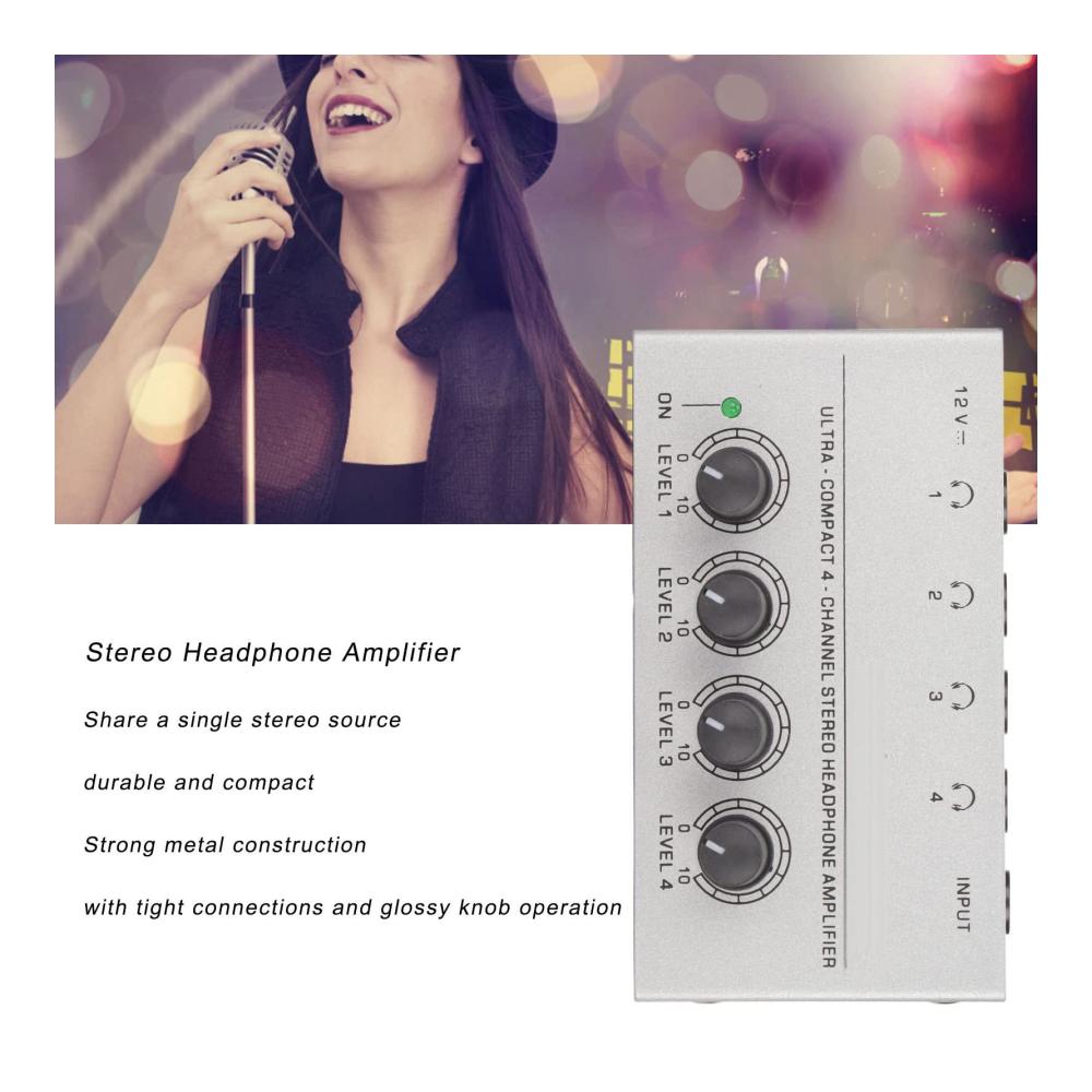 [Share Single Stereo Source] 4 Verstärkerkanäle, individuelle Lautstärkeregler für jeden Ausgang, kein Knistern, minimale Verzerrung bei höchster Lautstärke. Kein Signalverlust beim Anschluss aller vier Kopfhörer.