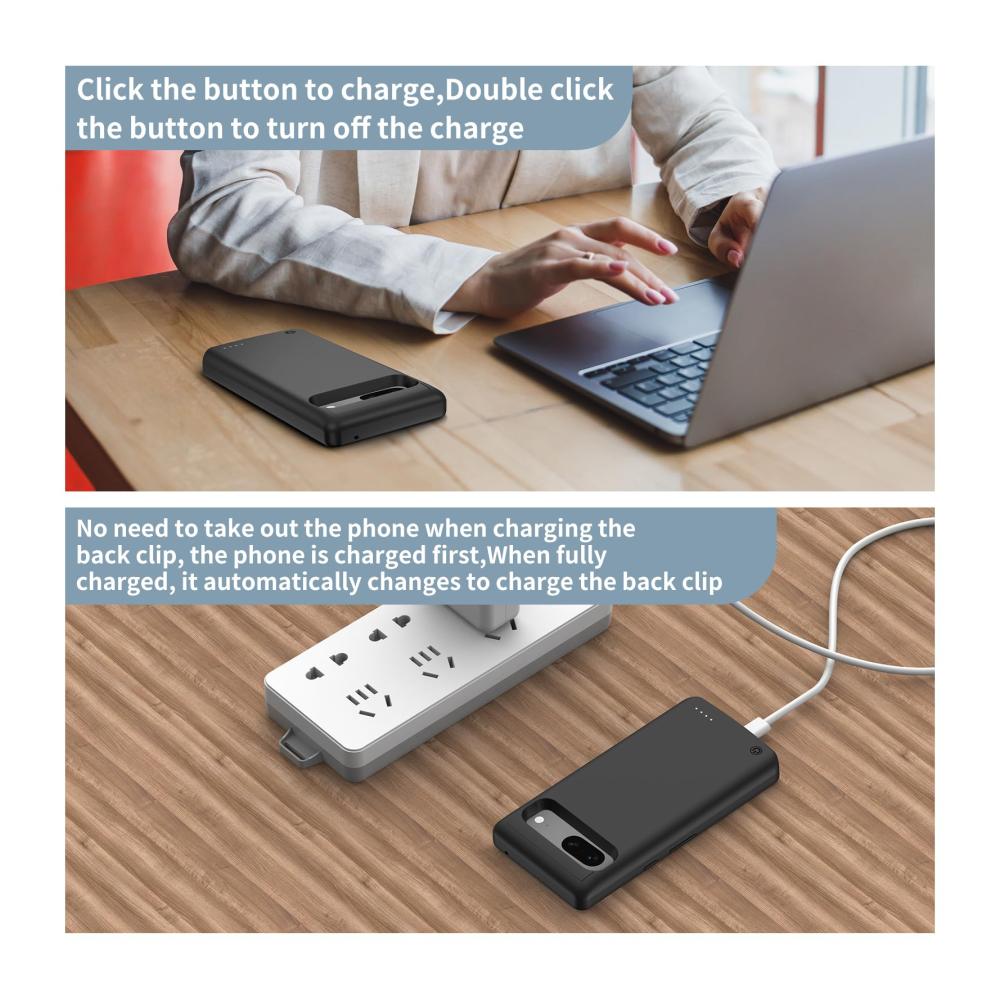 5W Qi Wireless Charging Unterstützt: Pixel 7 Batteriebox unterstützt 5W kabelloses Laden, kabelgebundenes Laden: 5V / 2A Eingang, 5V / 2A Ausgang, schnelles und leistungsstarkes Laden, verlängerte Batterielebensdauer um 150%