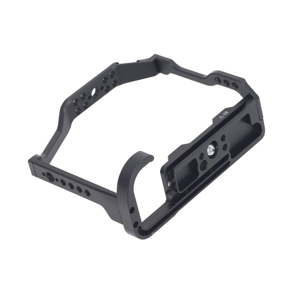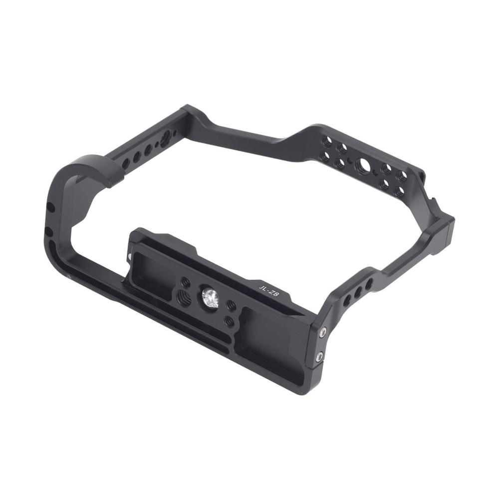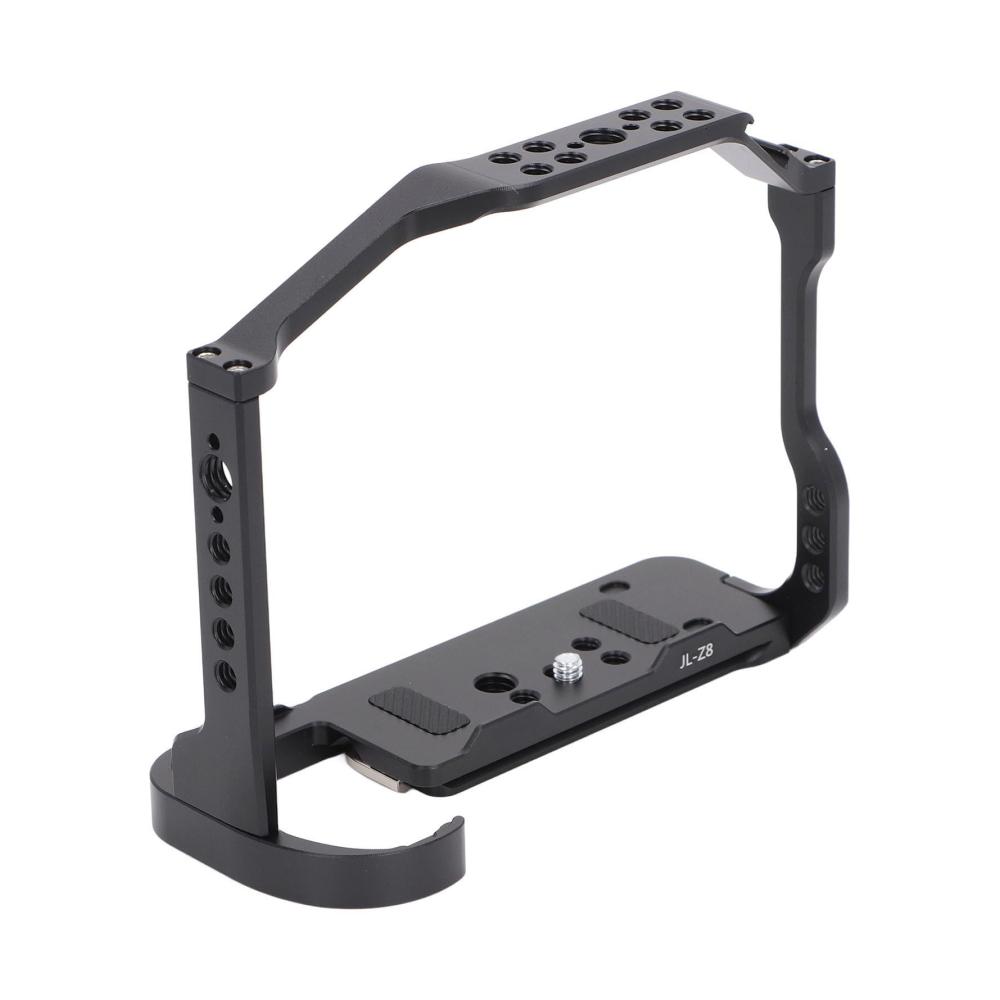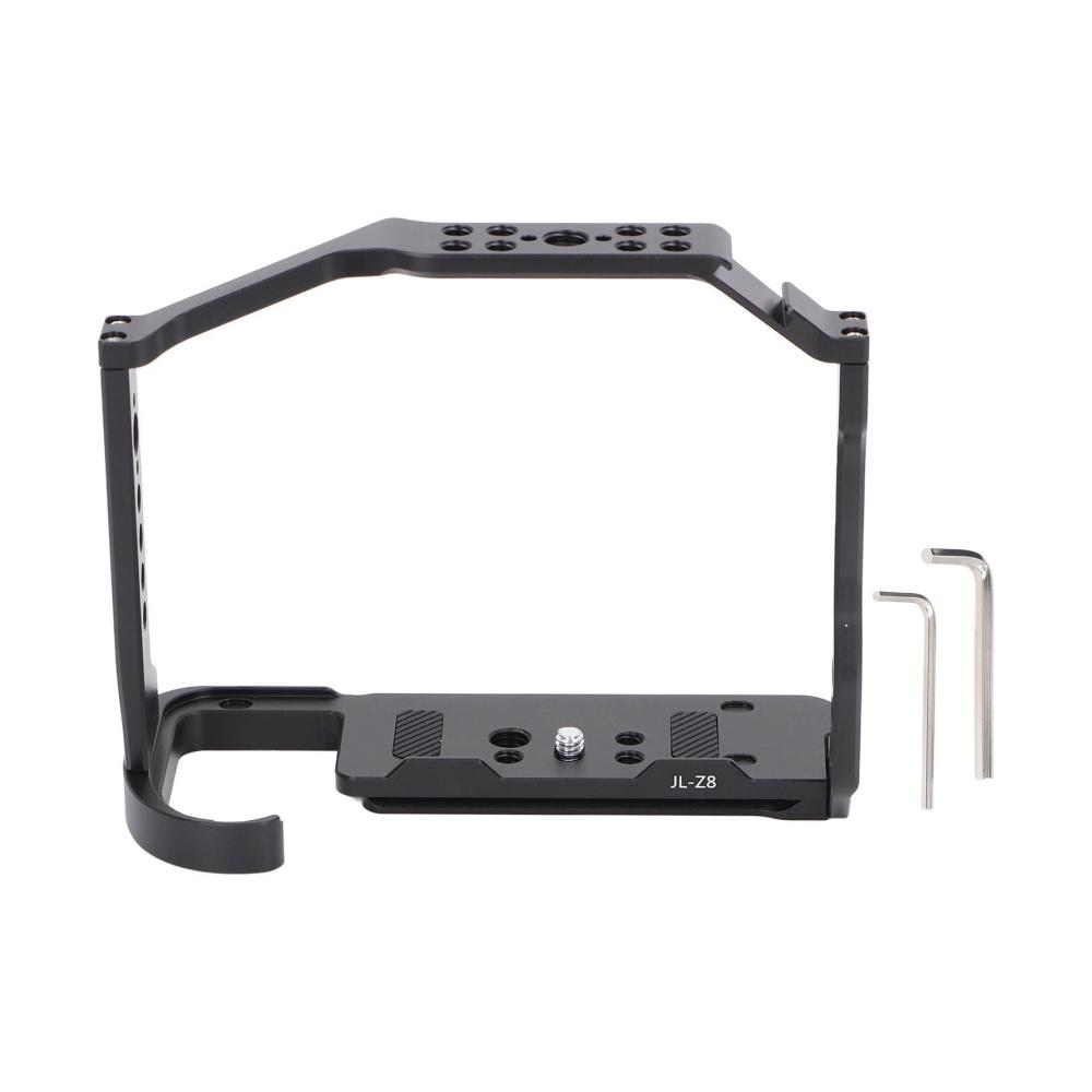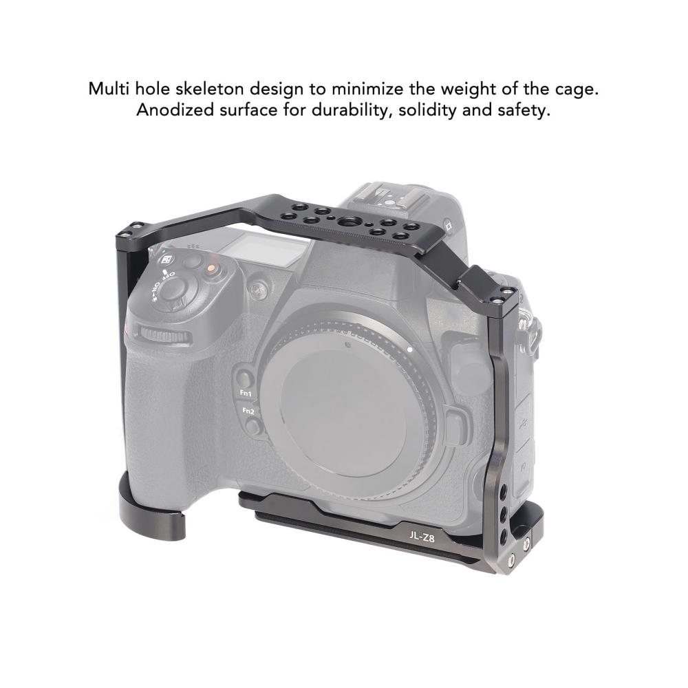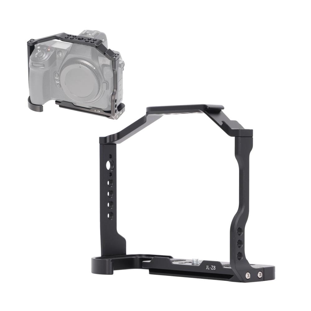 • Entdecken Sie die Vielseitigkeit dieses hochwertigen Aluminium-Vollkäfigs, speziell entworfen für die Nikon Z8. Mit einer Kaltschuhschnittstelle und verschiedenen Schraubenlöchern bietet er maximale Flexibilität.