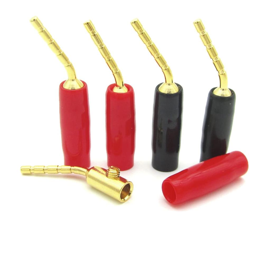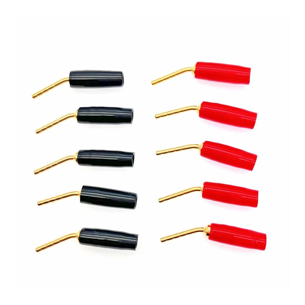 Lieferumfang: 5 Stück schwarze Bananenstecker 5 Stück rote Bananenstecker Es handelt sich um Lautsprecher-Bananenstecker mit schrägen Nadeln. Gesamtlänge: 4 cm. Der schräge Nadeldurchmesser beträgt 2 mm. Die Gummischale ist kurzschlussfest, die schräge Nadel besteht aus vergoldetem Kupfer, korrosionsbeständig und langlebig. Kein Schweißen nötig, kann direkt verwendet werden. Die Standardgröße ist für die meisten Lautsprecher geeignet. Geeignet für Lautsprecher mit traditionellen Polklemmen und ideal zum Anschluss von Satelliten- und Mittel-Lautsprechern an AV-Receivern.