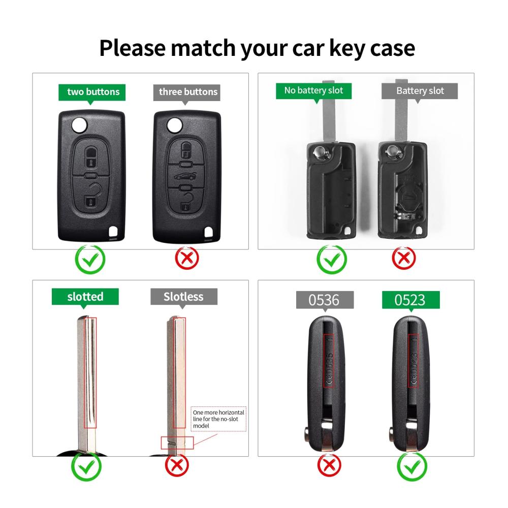 KOMPATIBILITÄT: Kompatibel für Schlüsselarten Citroen(C2 C3 II C4 I Picasso C5 III C6 Berlingo Nemo Jumpy C8 DS3 DS4 Plurier). Peugeot(Partner 107 206 207 208 307 308 407 408 508 RCZ 607 807 1007 2008 3008 4008 4007 5008 Expert Bipper). Fiat. Bitte beachte die Form Deines Schlüssels.