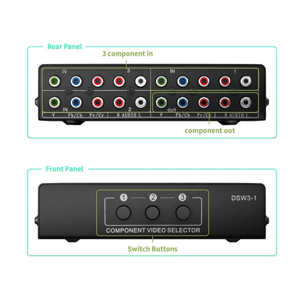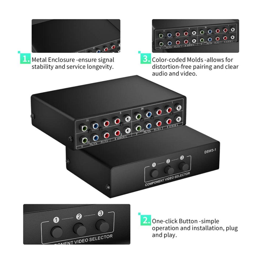 4 Standard &34;Y-Pb/cd-Pr/, L-Audio-R&34;, 3 in 1 out.