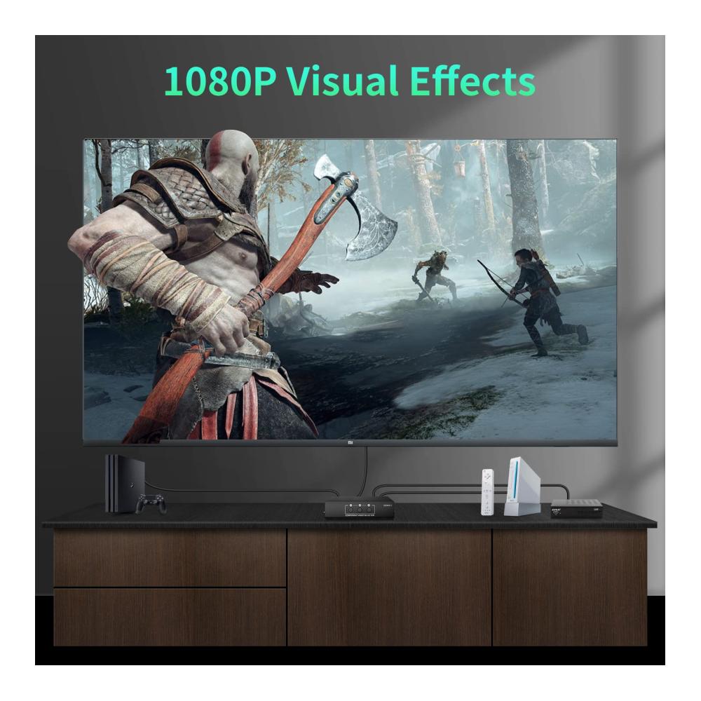 🍁 Hochwertiger AV RCA Switch 3 in 1 Out 🍁 – Der BolAAzuL Composite Video Audio Switcher Box ermöglicht die Verbindung von bis zu 3 Audio- und Videogeräten mit Ihrem Fernseher für ein ultimatives Entertainment-Erlebnis.