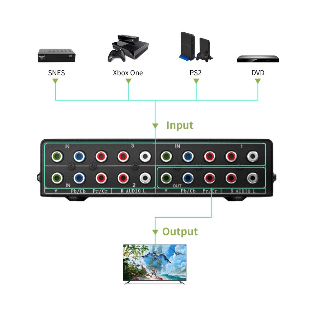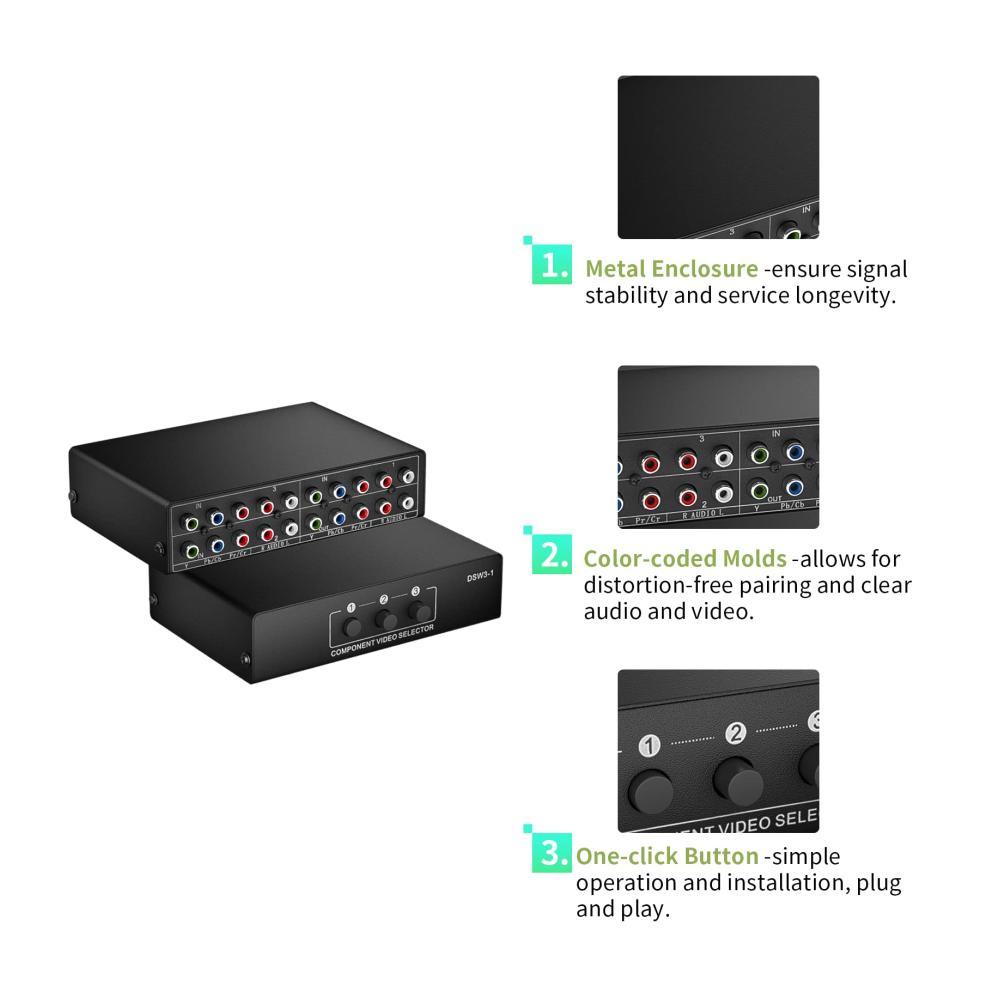 🍁 Lieferumfang: 🍁 – 1x 3 In 1 Out RGB Component Selector für Cinch Kabel.