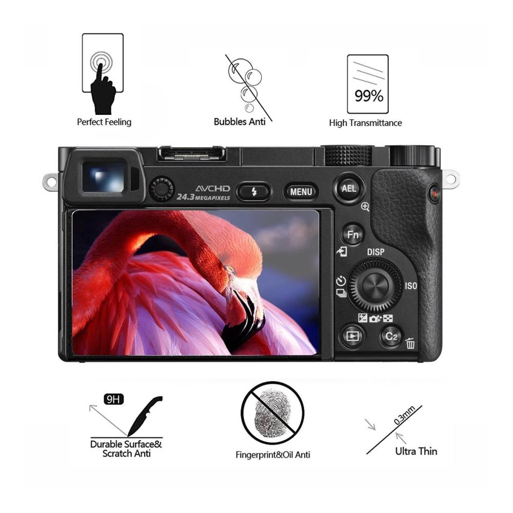 • KOMPATIBILITÄT: die folie ist für Sony DSLR Alpha A6000 A6300 A5000 NEX-3 NEX-5 NEX-6 NEX-7 geeignet, 0.3mm dick Panzerglas.