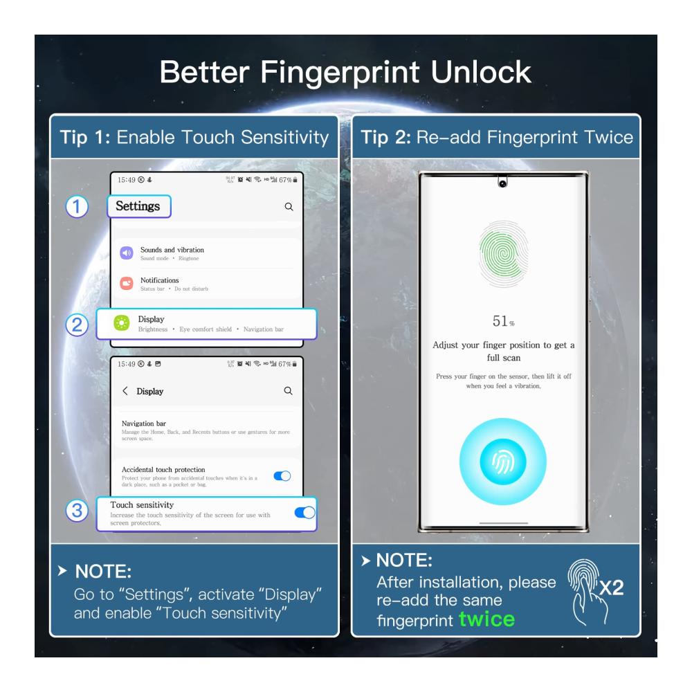 [Hochsensibel] Das ultradünne Design macht den Bildschirm reaktionsschnell und angenehm zu berühren. Kompatibel mit Gesichtserkennung und Fingerabdrucksensor. Bitte fügen Sie Ihre Fingerabdrücke für eine bessere Entsperrung Erfahrung nach der Installation