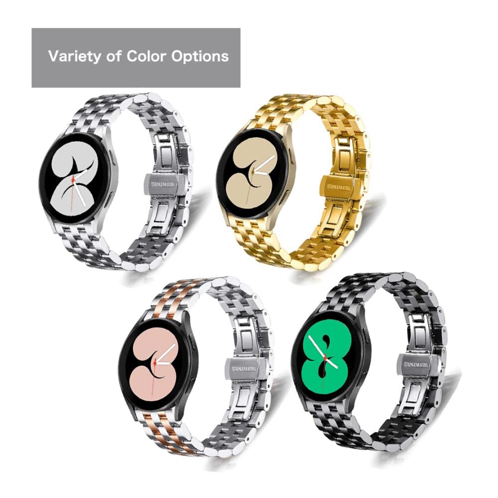 Entdecken Sie das KoGiio Edelstahl-Metall-Uhrenarmband, das mit einer Vielzahl von Smartwatches kompatibel ist, einschließlich Samsung Galaxy Watch 6, 5, 4 und mehr. Hergestellt aus hochwertigem Titanmetall für Langlebigkeit und Komfort. Die einfache Installation ohne Werkzeug macht das Wechseln des Armbands zum Kinderspiel. Das Paket enthält alles, was Sie für die Anpassung benötigen. Machen Sie Ihre Uhr mit diesem stilvollen Ersatzarmband zu einem Blickfang!
