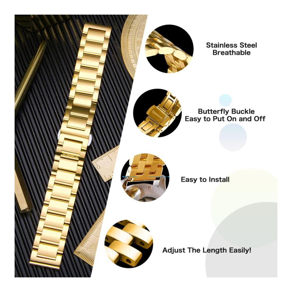 √ [Einfache Längenverstellung] Einzigartige Doppelknopf-Faltschließe Design. Wir bieten Tools zum Entfernen von Gliedern, mit denen Sie die Länge des Riemens anpassen können, sichere und Mode.
