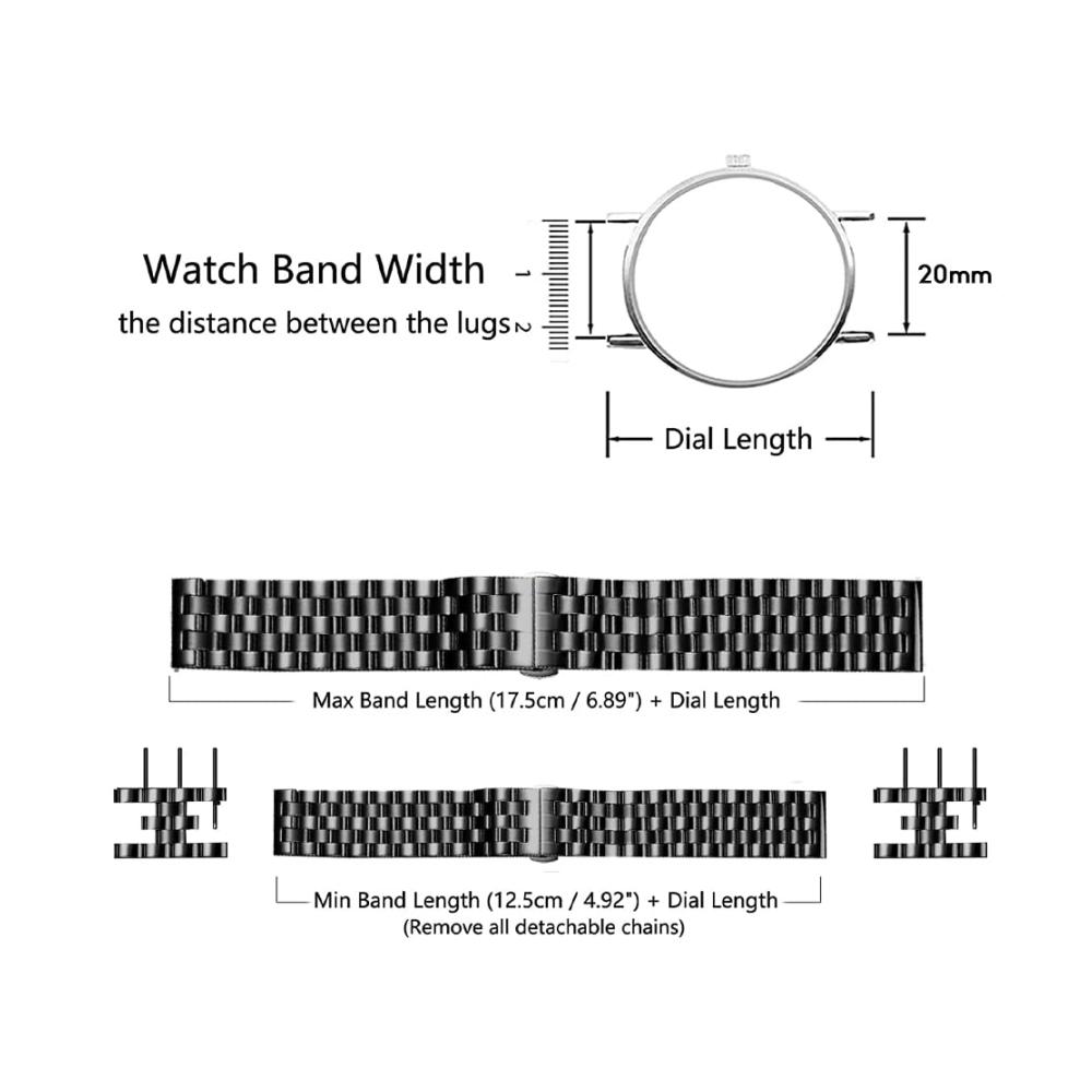 KoGiio Edelstahl-Metall-Uhrenarmband Kompatibel mit allen Uhren mit einer Bandanstoßbreite von 20mm[Kompatibles Modell] -für Samsung Galaxy Watch 6 Classic (43mm 47mm ) -für Samsung Galaxy Watch 6 (40mm 44mm) -für Samsung Galaxy Watch 5 (40mm/44mm) -für Samsung Galaxy Watch 5 Pro 45mm -für Samsung Galaxy Watch 4 (40mm/44mm) -für Samsung Galaxy Watch 4 Classic (42mm/46mm) -für Samsung Galaxy Watch Active 2 (40 mm/44 mm) -für Samsung Galaxy Watch Active -für Samsung Galaxy Watch 3 41 mm -für Samsung Galaxy Watch 42mm -für Samsung Gear Sport -für Samsung Gear S2 Classic -für Amazfit Bip 3 Pro -für Amazfit Bip 3 -für Amazfit GTR Mini -für Amazfit GTS 4 -für Amazfit GTS 4 Mini -für Amazfit GTR 42mm -für Amazfit GTS -für Amazfit GTS 2 Mini -für Amazfit GTS 2 -für Amazfit GTS 2e -für Amazfit Bip -für Amazfit Bip Lite -für Amazfit Bip S -für Amazfit GTS 3 -für Garmin vívomove Trend -für Garmin Venu Sq 2 -für Garmin Venu 2 Plus -für GarminMove Sport -für Garmin Vivoactive 3 -für Garmin Venu -für Garmin Vivomove 3 -für GarminMove Luxe -für GarminMove Style -für Garmin Vivomove HR -für Huawei Watch 2 -für Huawei Watch 2 Pro -für Huawei Watch 2 Sport -für Huawei Watch GT 3 Pro 43mm -für Huawei Watch GT 3 42mm -für Huawei Watch GT 2 42mm [Funktion und Eigenschaften] -1. Hergestellt aus hochwertigem Titanmetall, verschleißfest, korrosionsbeständig, hautfreundlich und hypoallergen. -2. Verwenden Sie einfach Ihre Hände, um das Band ohne Werkzeug zu installieren, sehr einfach. [Paket enthalten] 1 x uhrenarmband edelstahl 2 x Schnellspanner 1 x demontagewerkzeug 1 x bedienungsanleitung