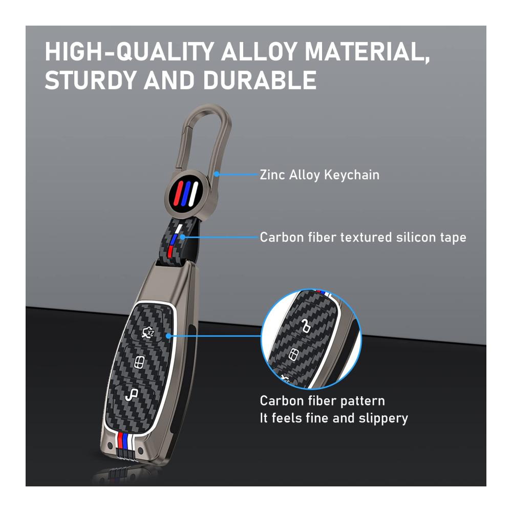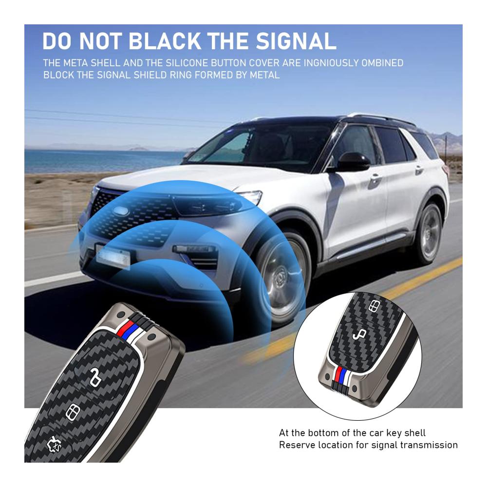 Dank des eleganten Kohlefaser-Musters sieht Ihr Schlüssel nicht nur gut aus, sondern ist auch optimal geschützt vor Beschädigungen, Staub und Kratzern. Die Metallhülle und Silikontastenabdeckung sind clever kombiniert und gewährleisten eine starke Signalübertragung, ohne die Funktion der Fernbedienung zu beeinträchtigen.