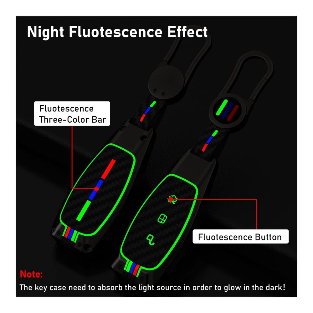 【Hochwertiges Material】Unsere Autoschlüssel Hülle sind aus hochwertigem Zink-Legierung Material und Silikon-Material, mit Low-Key-Luxus-Kohlenstoff-Faser-Muster, stilvoll und langlebig, die Ihren Schlüsselbox Cover erfrischen und geben Ihnen eine andere Luxus-Gefühl.Und die Silikonabdeckung absorbiert starkes Licht und hat einen leuchtenden Effekt in der Nacht, kann die Schlüsseltastenposition leicht sehen.