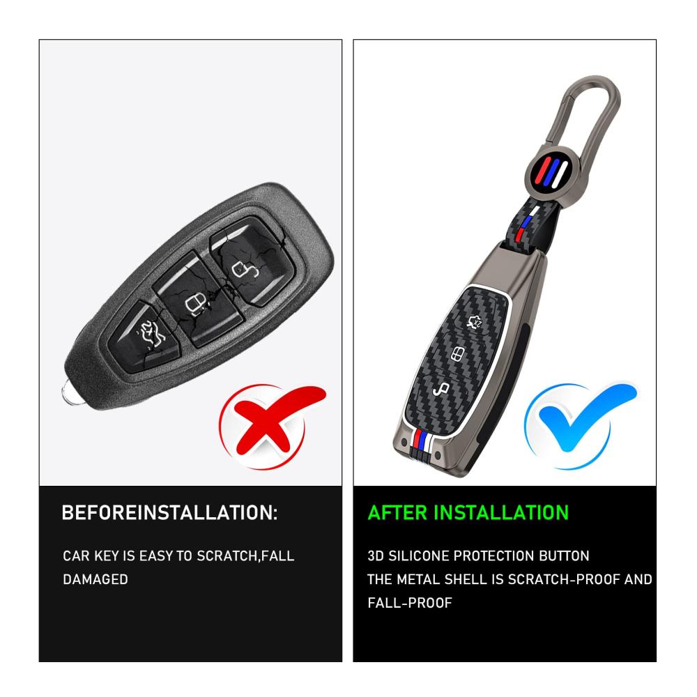 【Kundenspezifisches Design】Kompatible f*ord Schlüsselbox sind speziell auf die Original-Autoschlüssel abgestimmt. Das Design mit nahtloser Passform passt perfekt zu Ihren Schlüsseln und macht Ihre Schlüssel schöner, ohne die funktionale Nutzung zu beeinträchtigen. Die Kombination aus Zinklegierung und Silikonhülle eignet sich eher für geschäftliche Anlässe als reines Silikon Schlüsselhülle. Schlichte und sportliche Schlüsselbänder machen unsere Schlüsseletuis auch für lässige Anlässe geeignet.