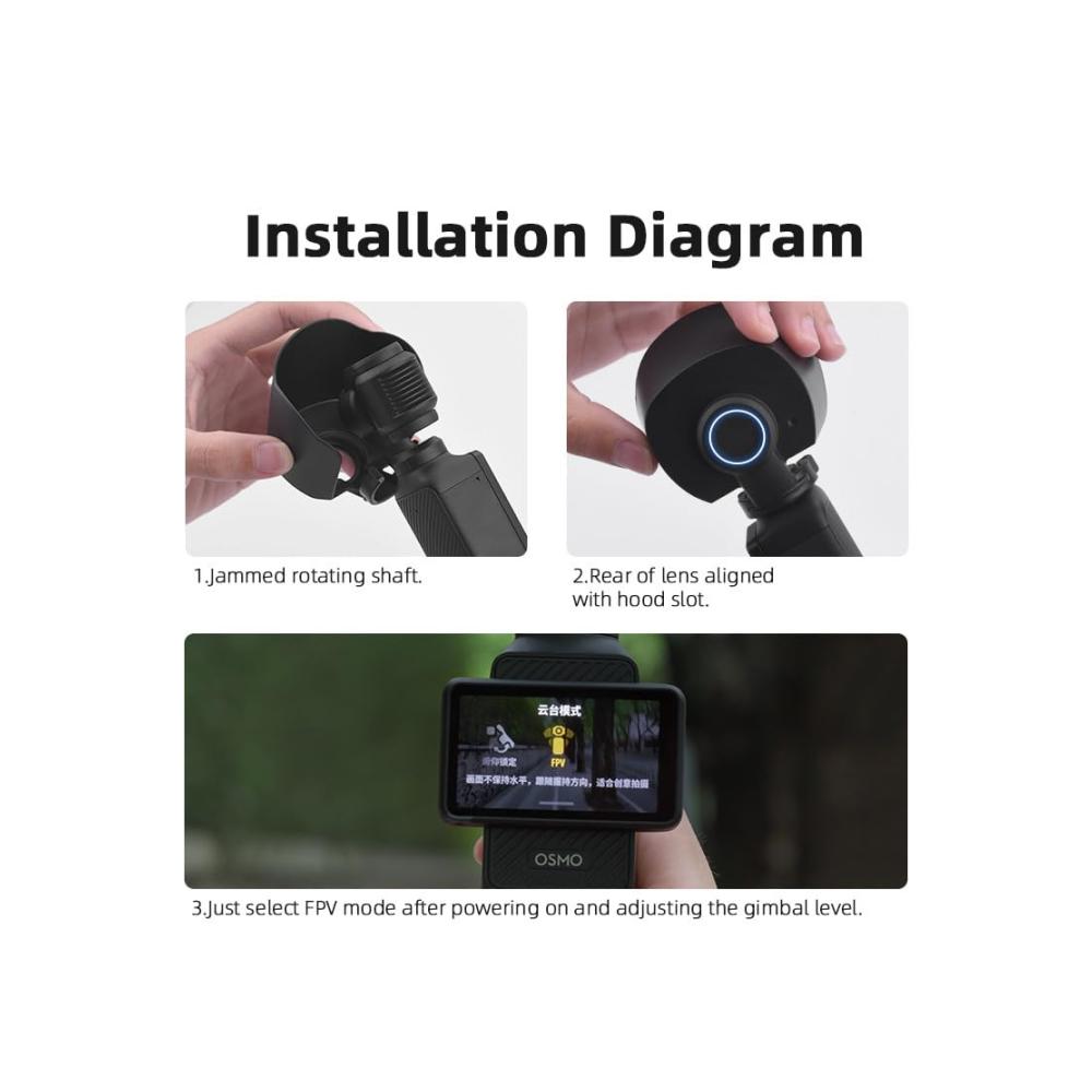 • Die Gegenlichtblende für DJI OSMO Pocket 3 ist ein unverzichtbares Zubehör für klare Aufnahmen. Reduzieren Sie die Beeinträchtigung durch Sonnenlicht mit diesem hochwertigen Blendschutz für das Gimbal-Kameraobjektiv. Hergestellt aus strapazierfähigem ABS-Material und mit einem Gewicht von nur 13g ist diese Sonnenblende einfach zu bedienen und bietet optimalen Schutz. Kompatibel für POCKET 3, ist sie die perfekte Ergänzung für Ihre Handkamera.