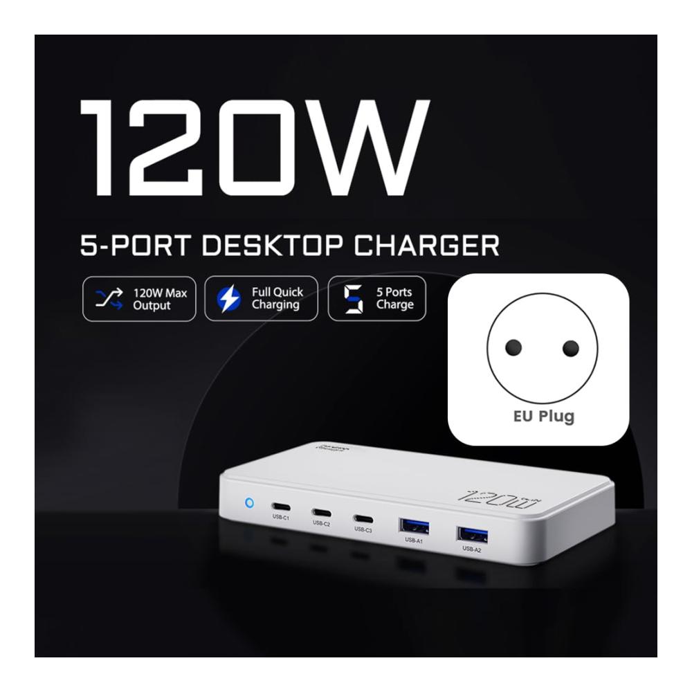 Mit unserem Produkt erleben Sie die optimale Kombination von Vielseitigkeit und Leistung. Seien Sie bereit für grenzenlose Konnektivität mit unserem 120-W-USB-Typ-C-Ladegerät und Desktop-Ladestation.
