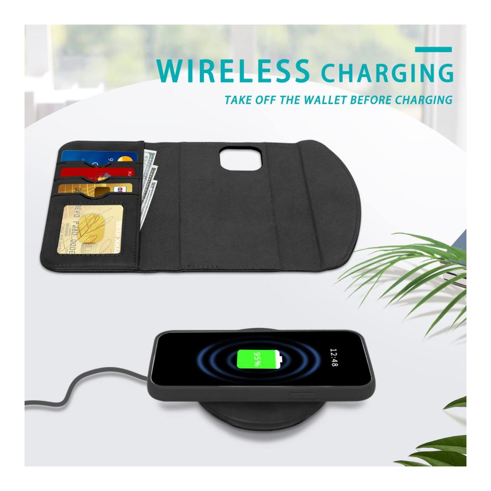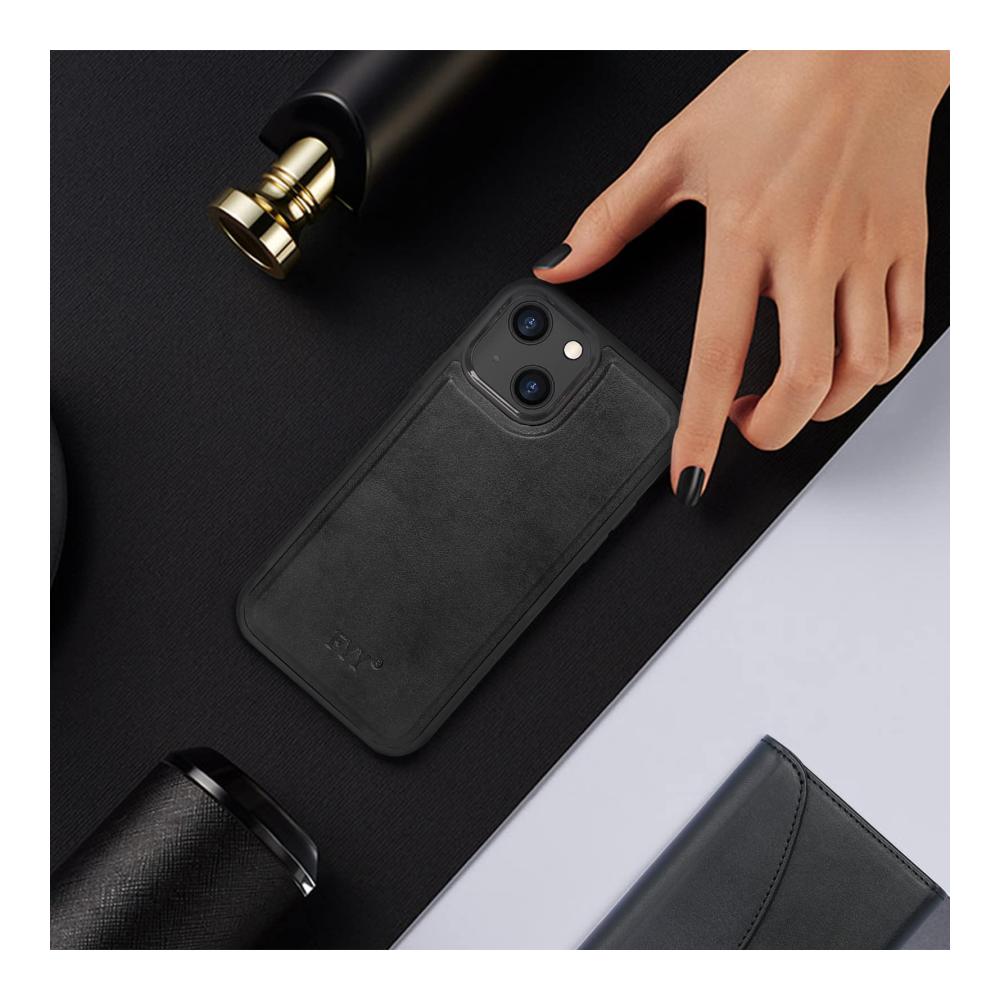 WIIUKA Hülle für iPhone 14, Leder aus Deutschland, mit Kartenfach, extra Dünn, Handyhülle mit Standfunktion, Tasche Schwarz