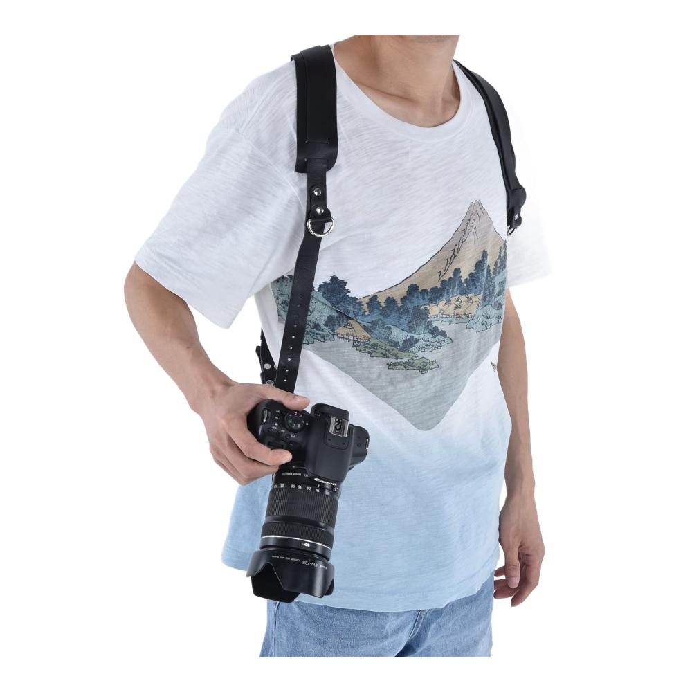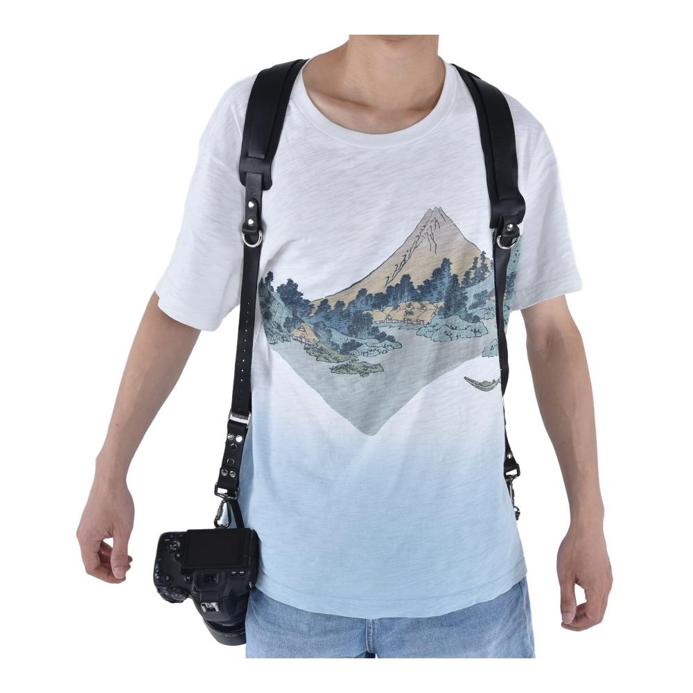 Doppelter Schultergurt: Dieser Kameragurt verfügt über ein Doppelschulter-Design, sodass Sie bequem zwei Kameras gleichzeitig tragen können. Der Kameragurt bietet eine praktische Lösung für Fotografen, die schnellen Zugriff auf mehrere Kameras benötigen.