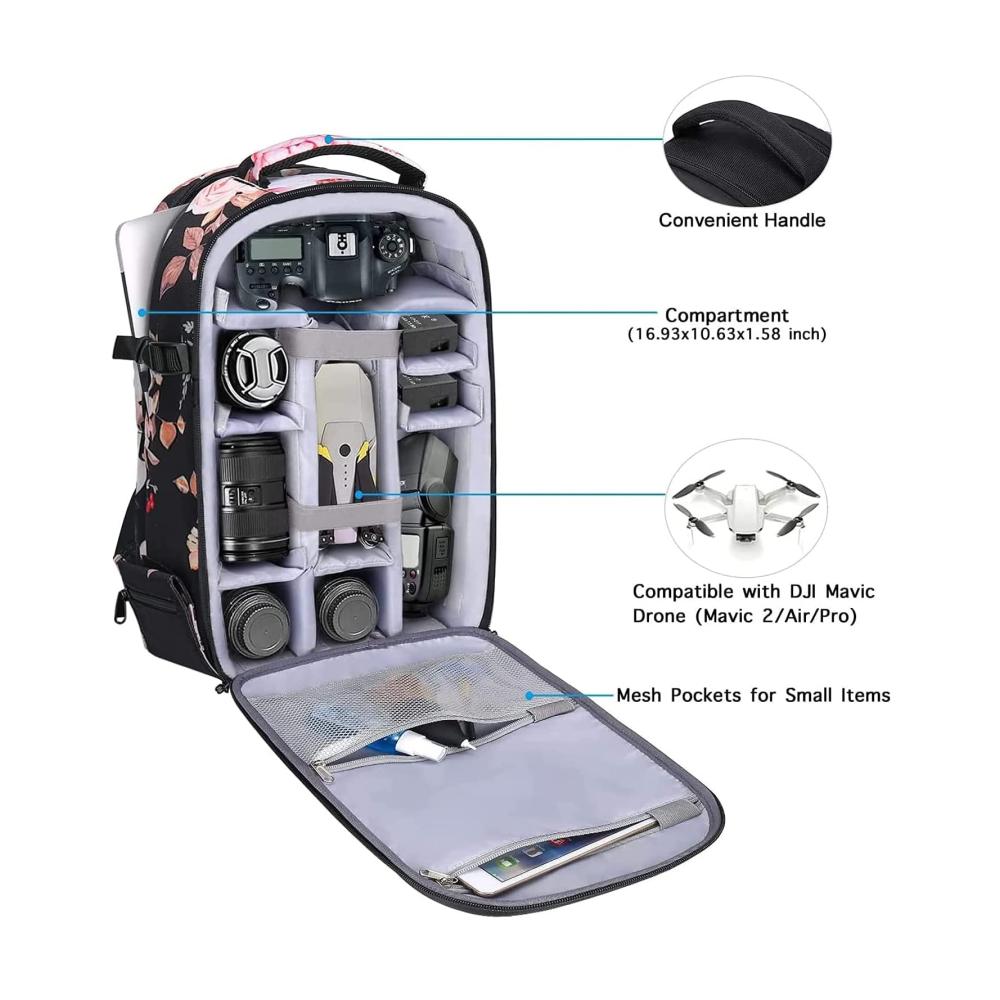 Der elegante schwarze Rucksack mit dem floralen Peony-Design vereint Stil und Funktionalität. Ganz gleich, ob Sie einen Städtetrip, ein Fotoshooting im Freien oder eine Abenteuerreise planen – mit diesem Kamerarucksack sind Sie bestens ausgestattet.