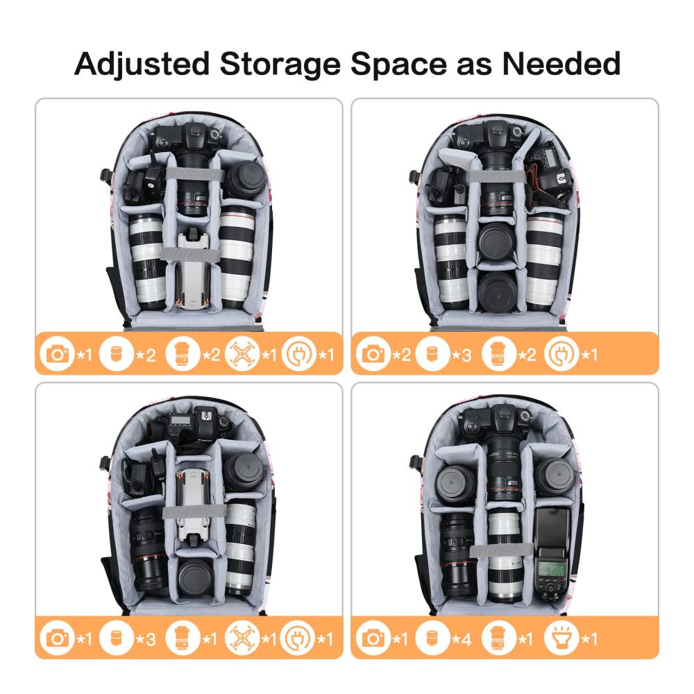 Abmessungen: 17,32 x 11,8 x 7,5 Zoll/44 x 30 x 19 cm 2 Fächer enthalten Gepolsterte modulare herausnehmbare Einsätze im oberen (16,54 x 11,42 x 5,5 Zoll/42 x 29 x 14 cm) sind kundenspezifische Trennwände für verschiedene Kameras, Blitze Objektiv und Drohnen. Mit wasserdichtem Hardshell-Schutz vorne. Die schaumstoffgepolsterte Schicht bietet einen guten Puffer und Schutz für Ihre internen Sachen vor Stößen und Stürzen. Ein hochelastisches Rückenkissen kann Ihre Schmerzen nach langer Zeit lindern. Ein weiteres (16,93 x 10,63 x 1,58 Zoll / 43 x 27 x 4 cm) ist kompatibel mit MacBook Pro 16 Zoll M1 A2185/A2141; kompatibel mit MacBook Pro 14 Zoll M1 A2442 2022 2021; kompatibel mit MacBook Air 13 A2337 M1 A2179 A1932 2022-2018 Kompatibel mit MacBook Pro 13 A2338 M1 A2251 A2289 A2159 A1989 A1706 A1708 2022-2016 und den meisten Laptops von 13-13,3 Zoll, 14 Zoll, 15 Zoll, 15,6 Zoll und bis zu 16 Zoll. Vollständig offenes Design. 2 Zubehörtaschen auf der Rückseite können Kabel, SD-Karten, Powerbank und andere kleine Gegenstände verstauen. Der Stativ-/Einbeinstativhalter ist mit einem sicheren Riemen auf einer Taschenseite ausgestattet. 1 Tasche auf der anderen Seite kann Regenschirm oder Wasserflasche (bis maximal 2,5 Durchmesser) aufbewahren. 1 diebstahlsichere Tasche auf der Rückseite für Ihre Brieftasche, Ihr Handy und wertvolle Gegenstände. Der gepolsterte Schultergurt variiert von 17,72 bis maximal 39,4 Zoll (45 bis 100 cm) und kann nach persönlichen Vorlieben eingestellt werden. Der am Schultergurt angebrachte Clipriemen kann Sonnenbrillen, Brillen, Handtücher und Kleidung aufhängen. 1 langlebiger Griff ist auch für unterschiedliche Anforderungen ausgelegt. Der hintere Trolley-Gürtel macht es während der Fahrt bequem. Perfekt für Männer und Frauen – Kamera-Enthusiasten. Diese multifunktionale Kameratasche wurde professionell für DSLR / SLR / spiegellose Kameras verschiedener Marken entwickelt. Kompatibel mit Nikon D5600, D5300, D3500, D3400, D3300, D3200; kompatibel mit Canon EOS Rebel T6, T6i, SL2 und anderen DSLRs in Standardgröße. Auch kompatibel mit DJI Mavic Drone (Mavic 2/Air/Pro). 1 Jahr Garantie auf jede Tasche. Entdecken Sie den ultimativen Kamera Rucksack für Ihre DSLR, SLR oder spiegellose Kamera!