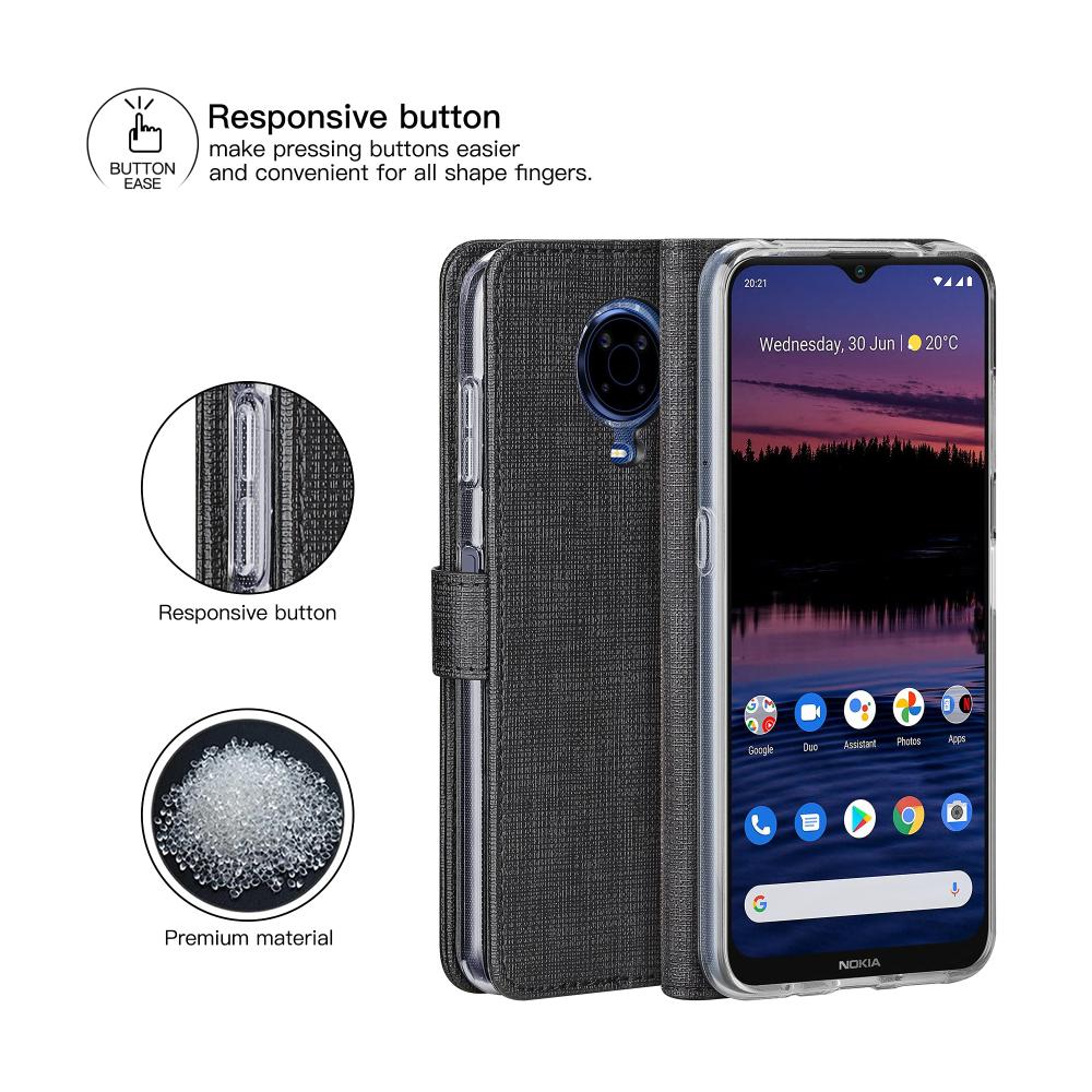 Schutzhülle für Nokia G20 2021 über Foluu Foluu widmet sich der Design-Philosophie der Popularisierung von Eleganz, hervorragender Verarbeitung und einfachem, aber klassischem Stil. Weniger ist mehr, Sie sind es wert. Unsere Hülle besteht aus transparentem, weichem TPU- und Canvas-Material. Es ist vereinfacht und schlank, bietet auch hervorragenden Schutz für das Nokia G20. Material und Design: √Kompatibilität: Kompatibel mit Nokia G20. Farbreich und gut verarbeitet. √ Hergestellt aus umweltfreundlichem Material, weichem TPU und Segeltuch-Tagebuch. Gibt Ihnen eine völlig andere Sicht, wenn Sie mit anderen Hüllen auf dem Markt vergleichen. √ Multifunktionale Klapp-Schutzhülle schützt nicht nur Ihr Handy, sondern auch mit 3 Kartenfächern und 1 Geldfach. Sie können Karten und etwas Bargeld in die Hülle stecken. √ Magnetisches Saugdesign und sensibler Knopfausschnitt, Gehäuse magnetische Saugfunktion, einfacher zu schließen und die Erfahrung ist gut. √ Mit dem dritten Gang einstellbaren Funktions-Design, legen Sie Ihr Telefon wie Sie wollen. 100% Zufriedenheitsgarantie Wir verpflichten uns zu 100% Kundenzufriedenheit. Unser Kundenservice-Team wird gerne kontaktieren. Wir antworten alle E-Mails innerhalb von 24 Stunden. Alle Kundeninteraktionen werden professionell und sinnvoll verarbeitet.