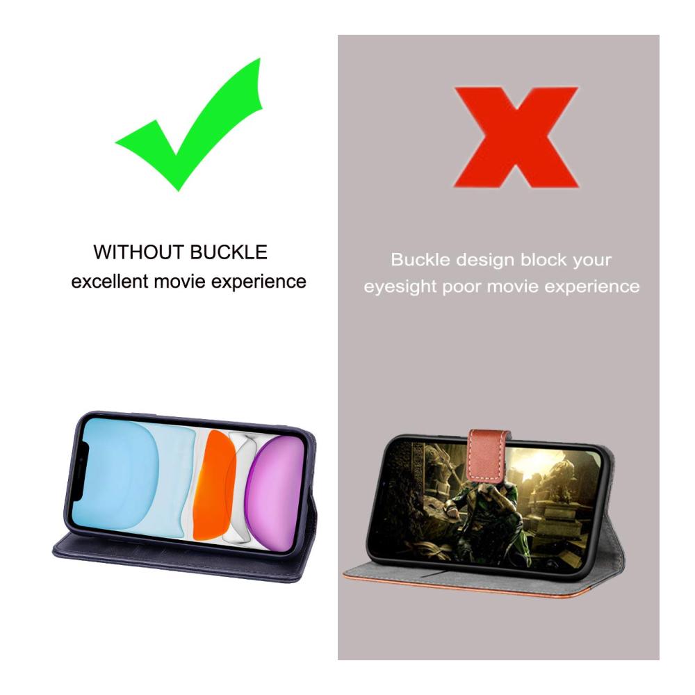♦ Standfunktion: Der eingebaute Ständer ist praktisch zum Lesen oder Ansehen von Videos, um Ihre Hände zu befreien. Die eingebaute Magnetschnalle kann die Sicherheit Ihres Mobiltelefons, Bargelds und Ihrer Karte gewährleisten und verhindern, dass das Smartphone versehentlich die Tasche öffnet.