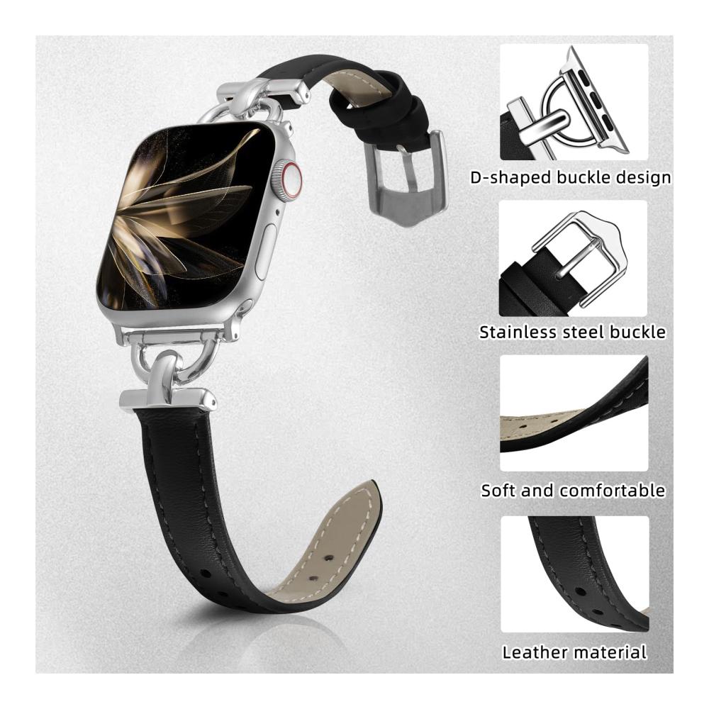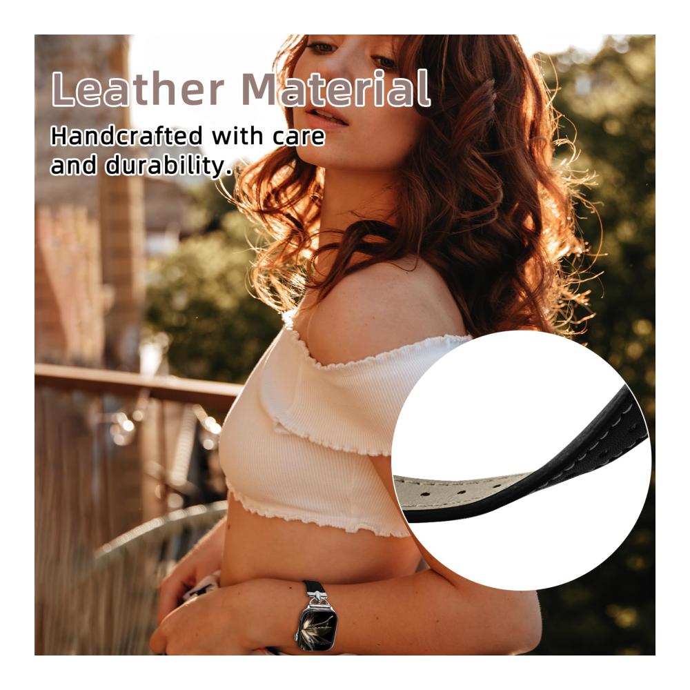 Unser Lederarmband ist die perfekte Wahl als Ersatzarmband für Ihre Apple Watch Series 9/8/7/6/5/4/3/2/1/SE/SE 2/Ultra 2. Das einfache und stilvolle Design macht Ihre Uhr modischer und schöner, während das hochwertige Material langlebig, atmungsaktiv und leicht ist.